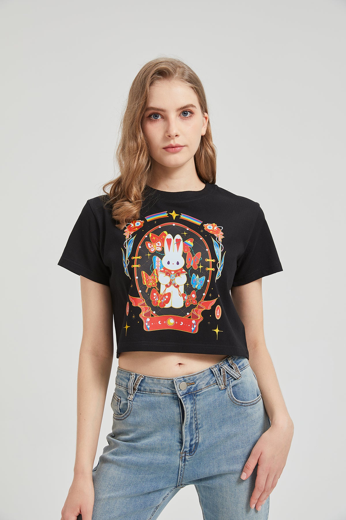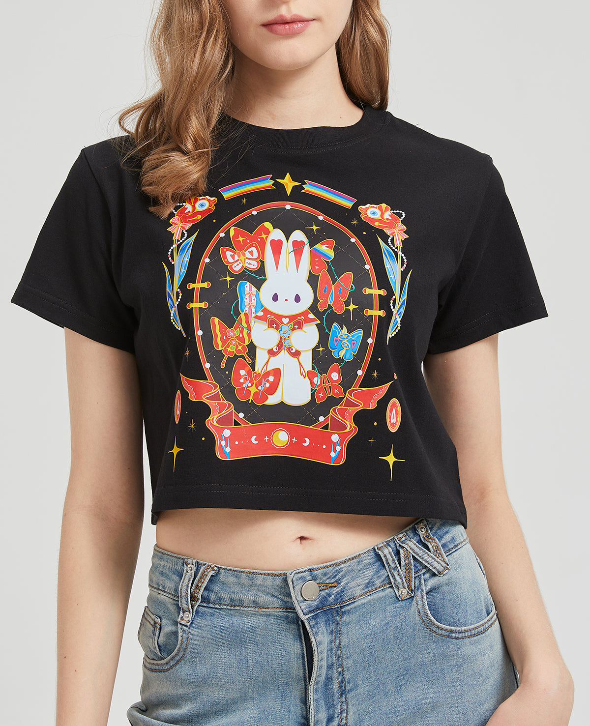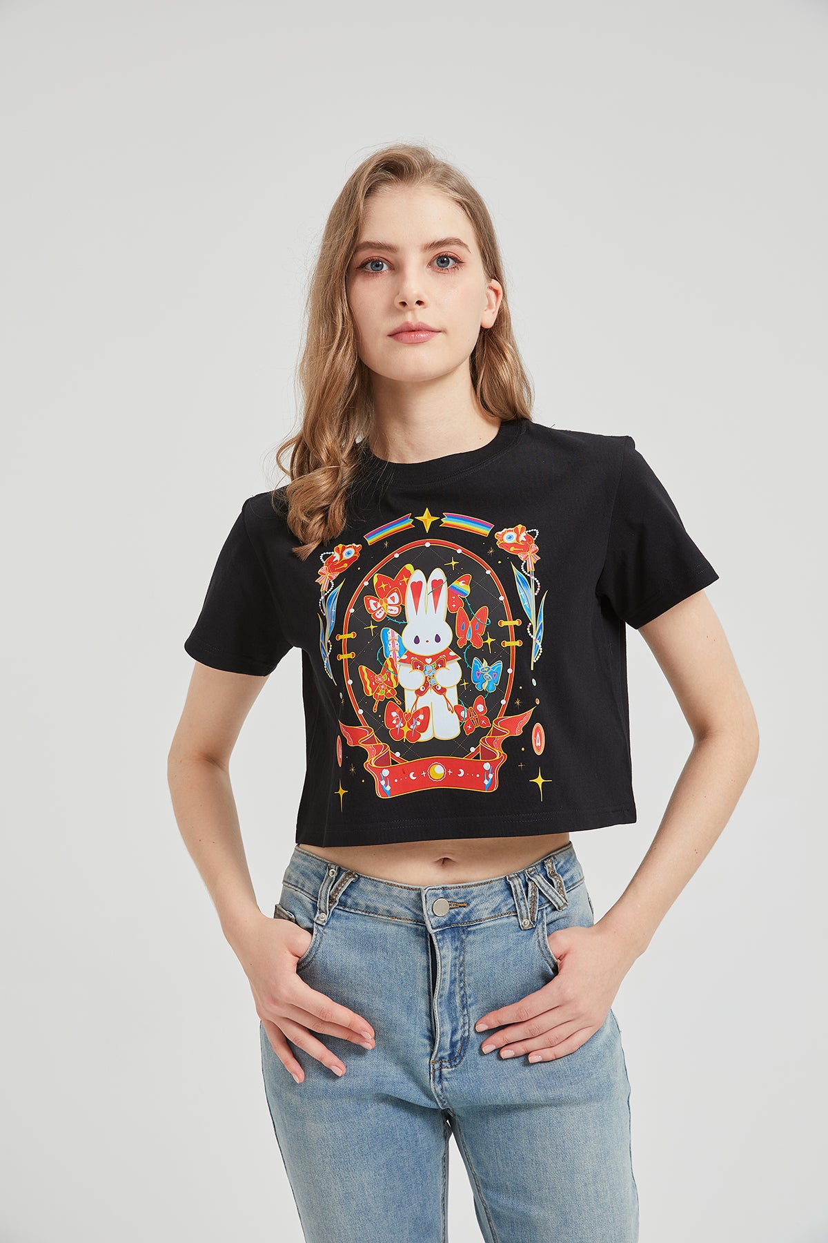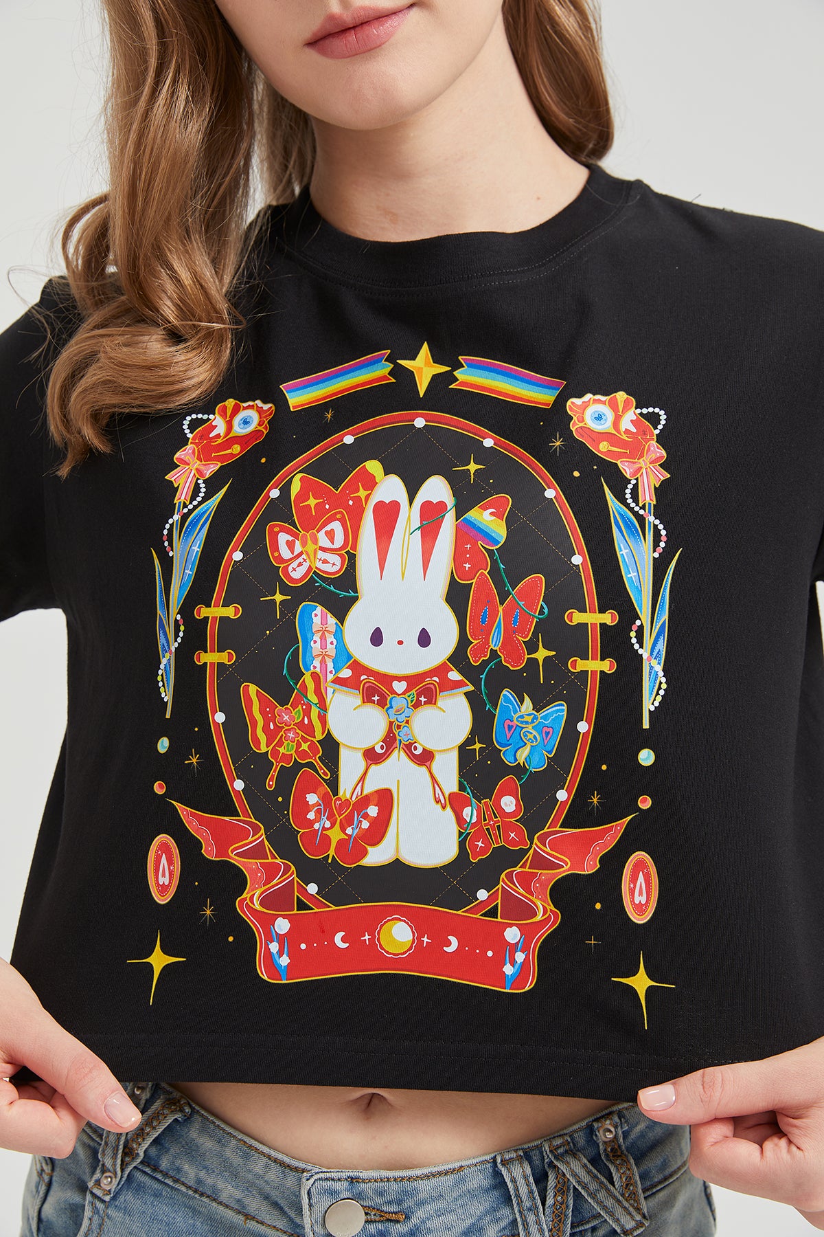 Rainbow Butterfly Wounded Bunny Cropped T-shirt Nichesou