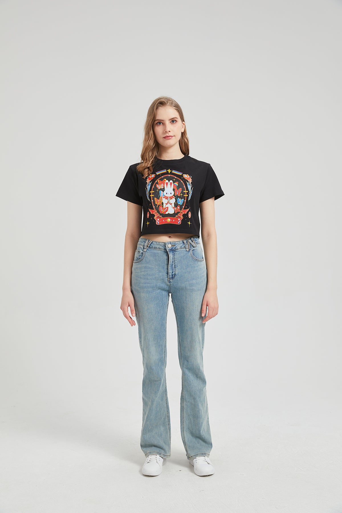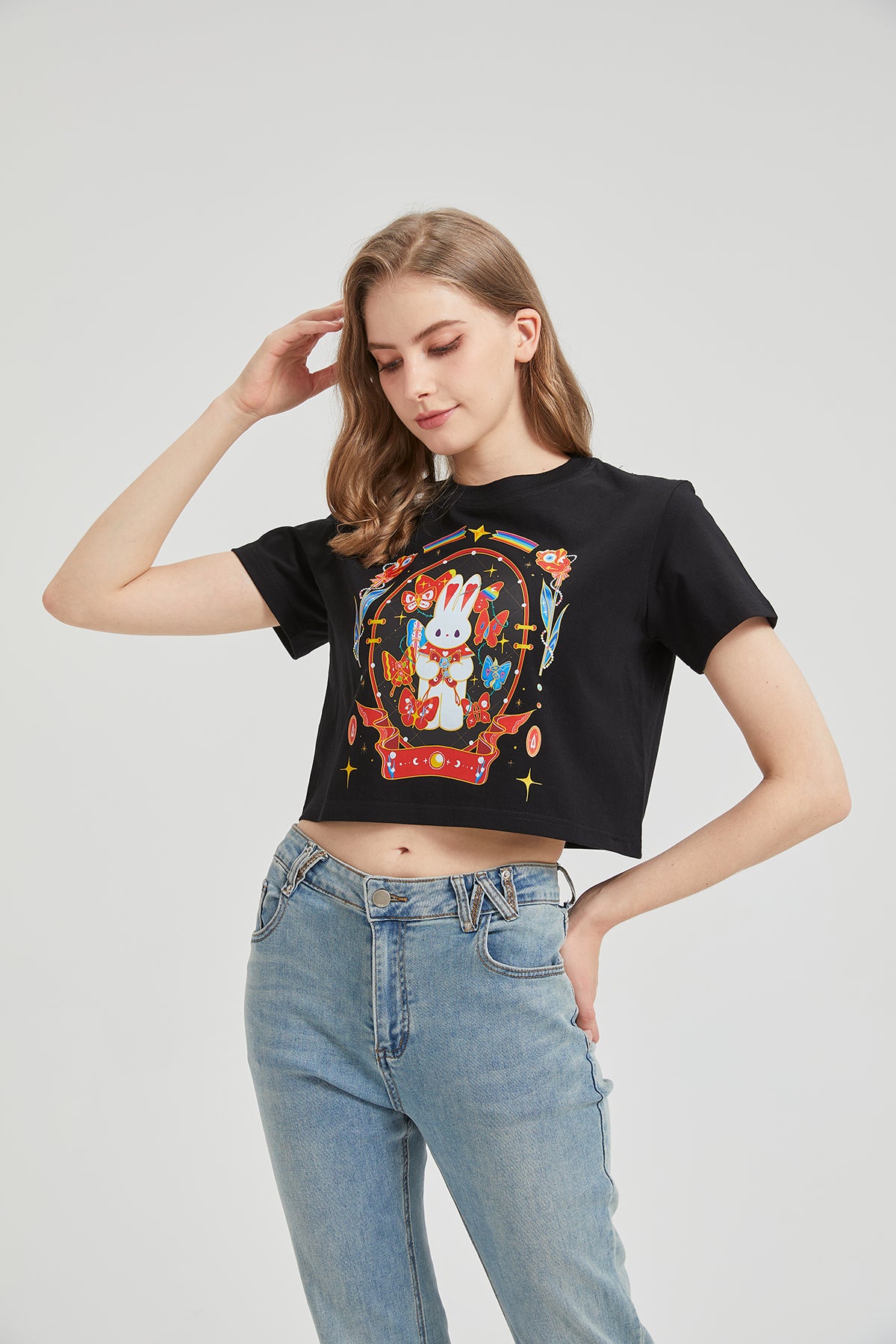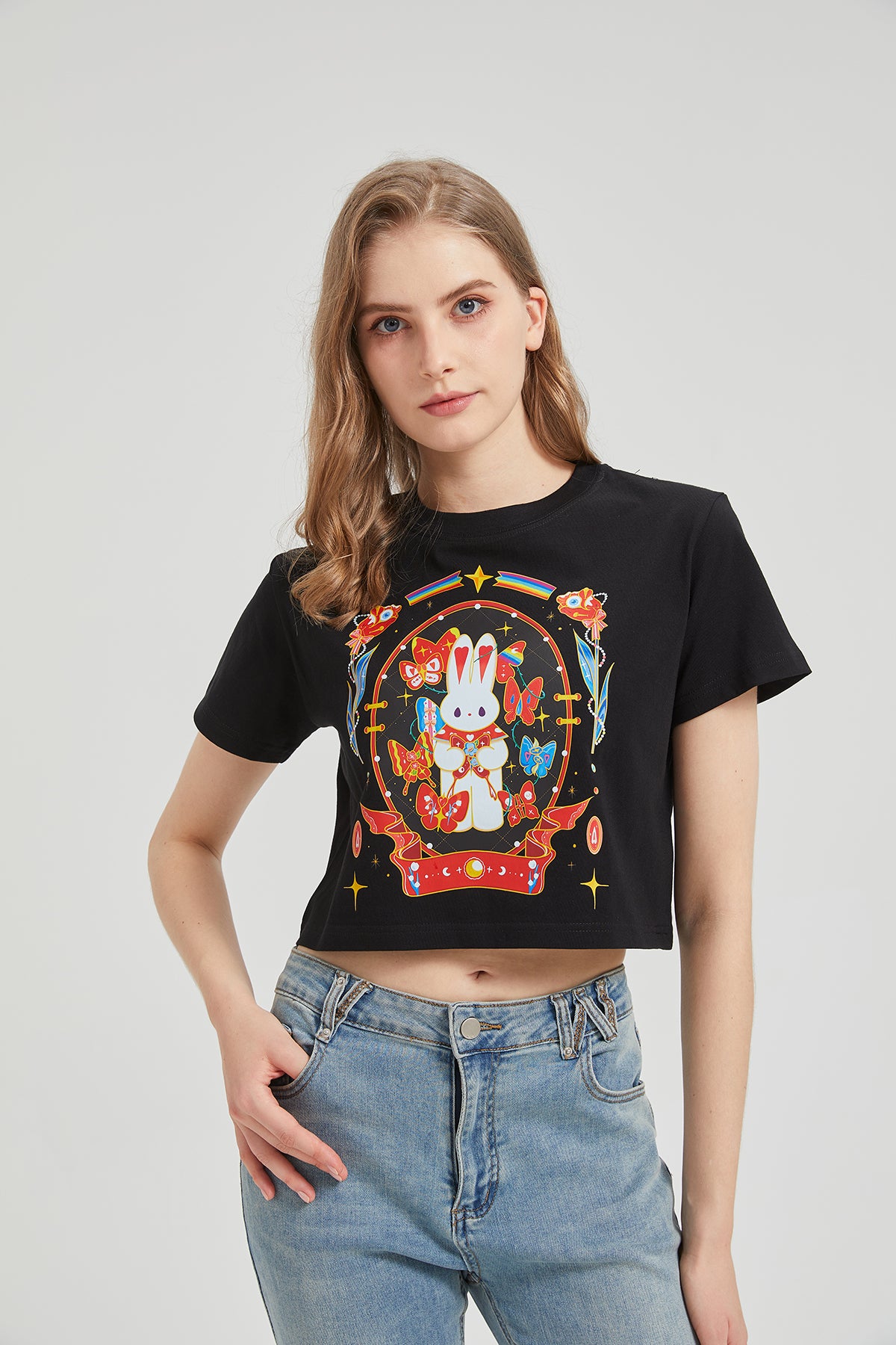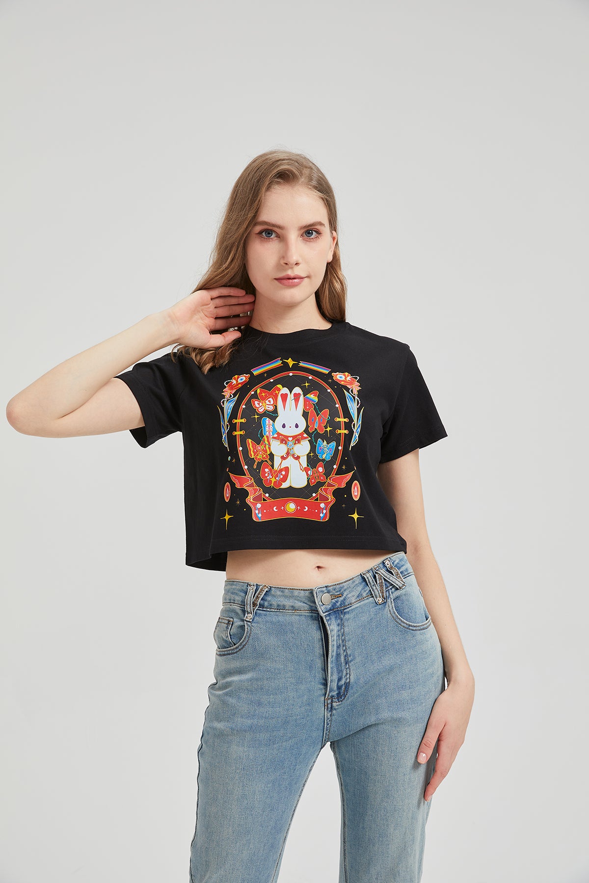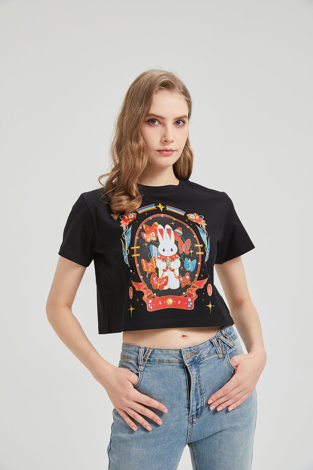 Rainbow Butterfly Wounded Bunny Cropped T-shirt Nichesou