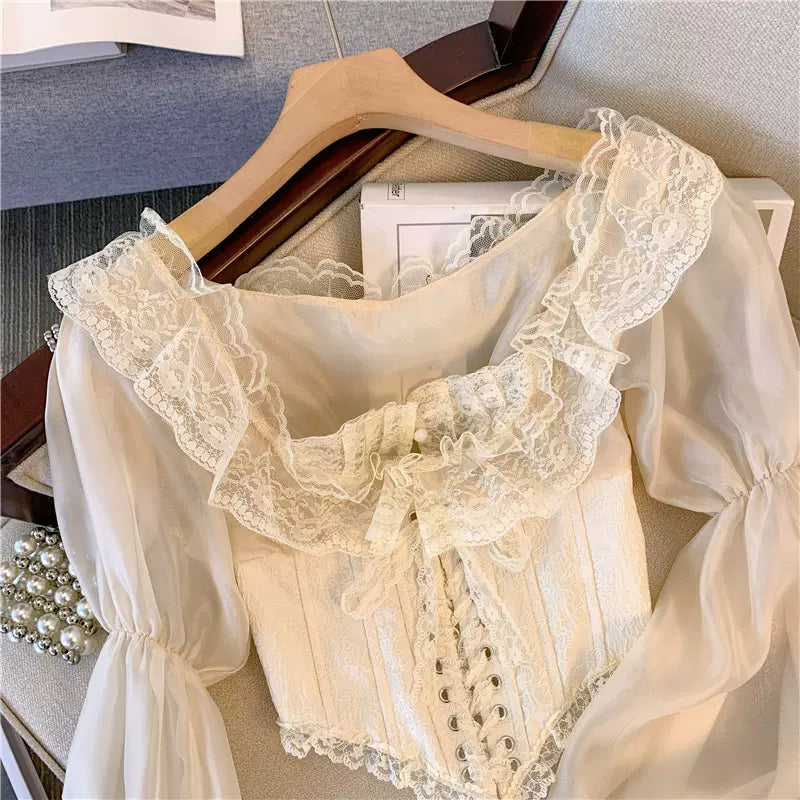 Royal Lace Tie Bustier Top Lolita Shirt