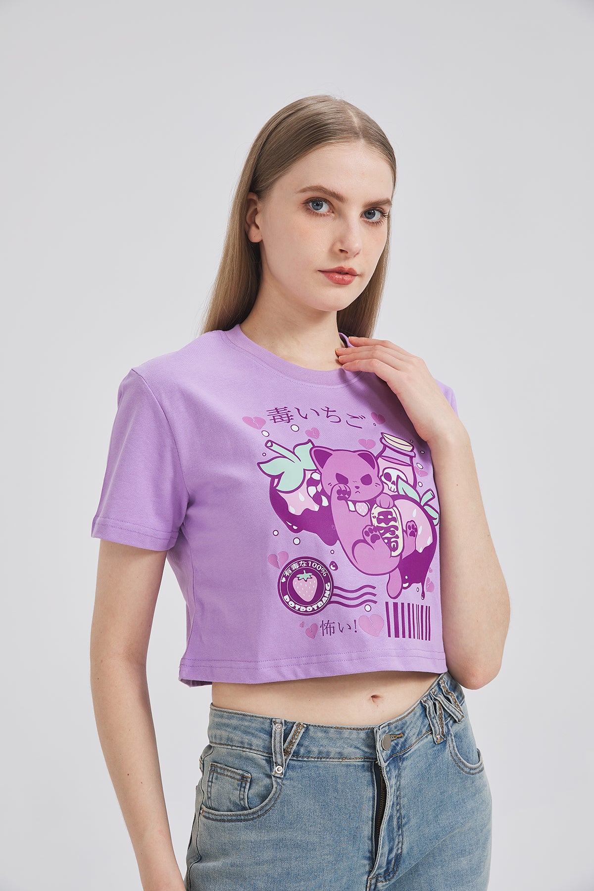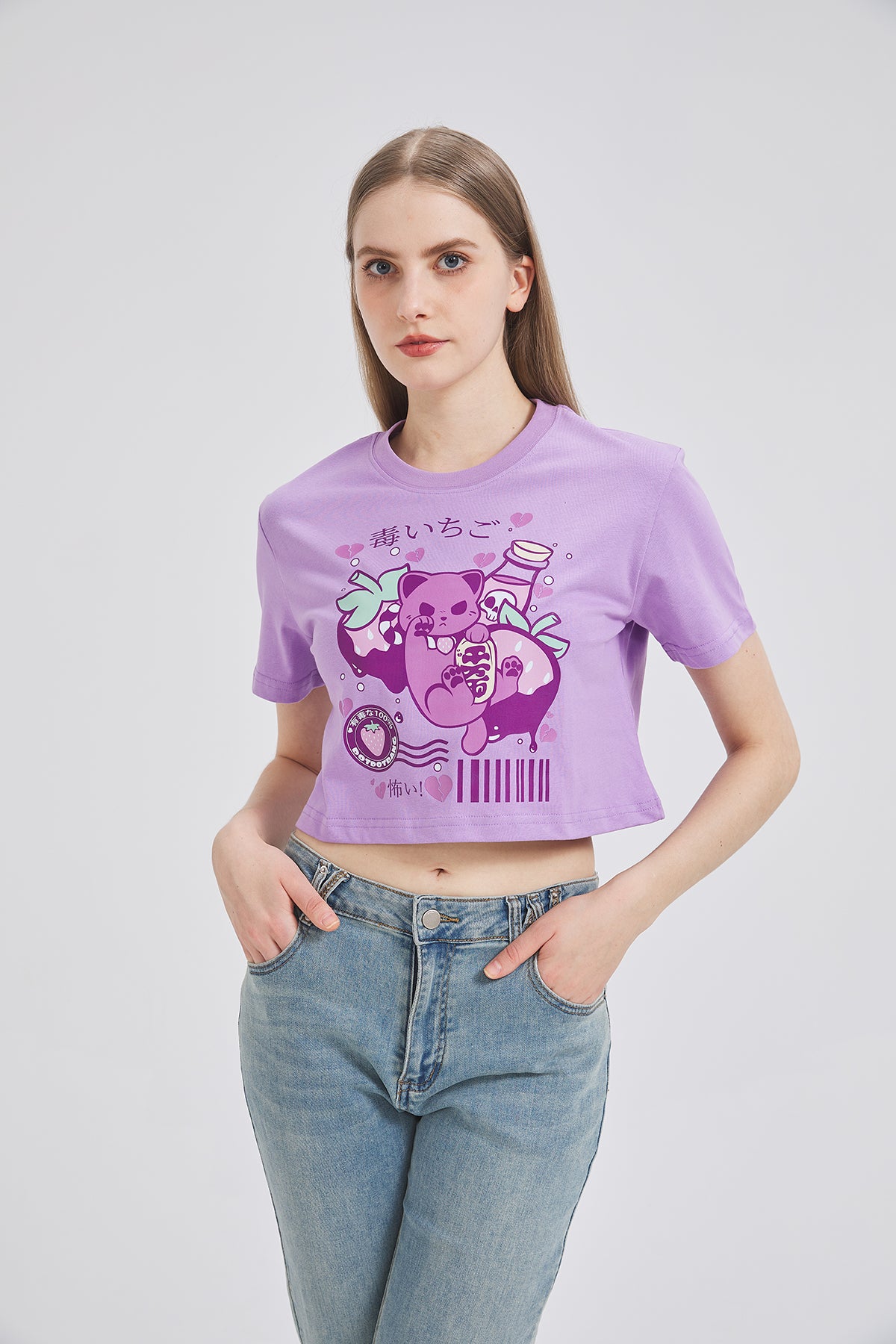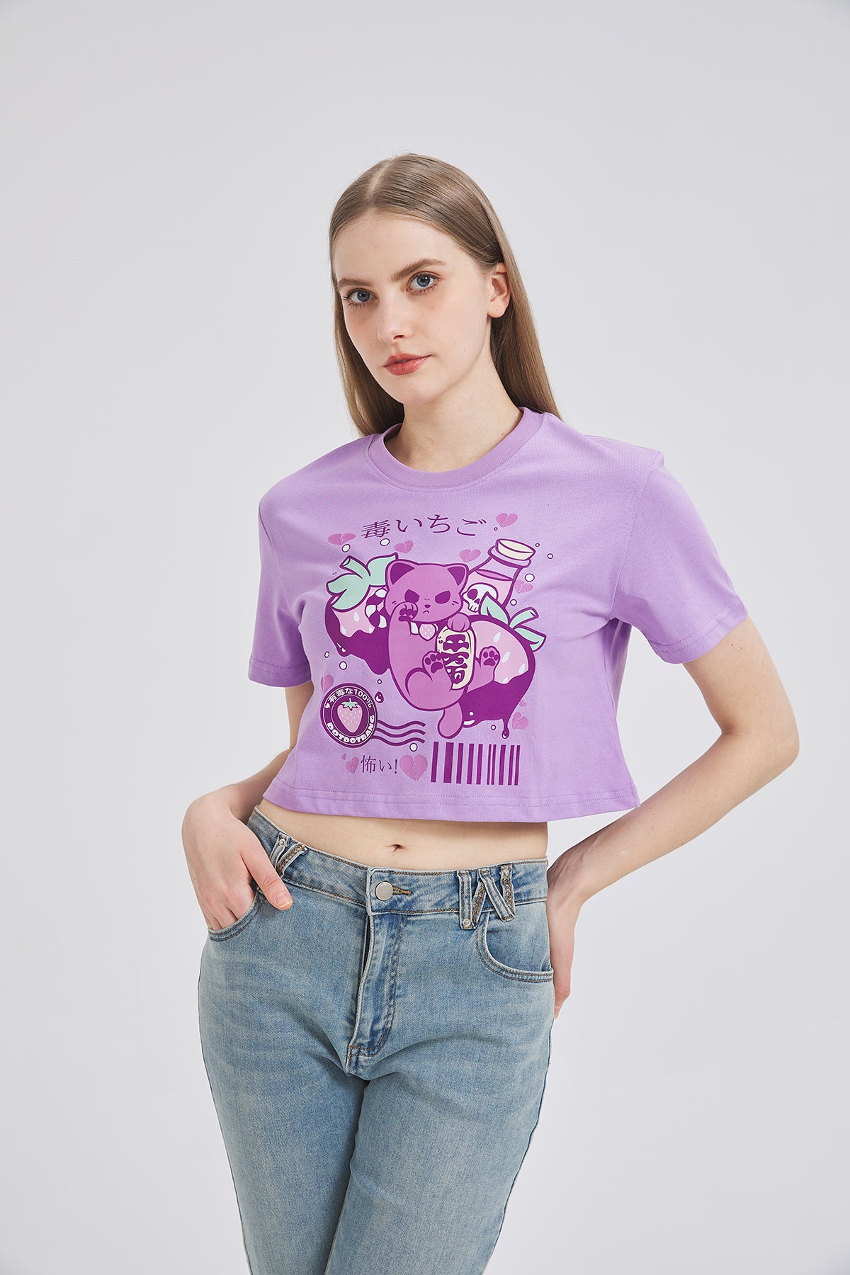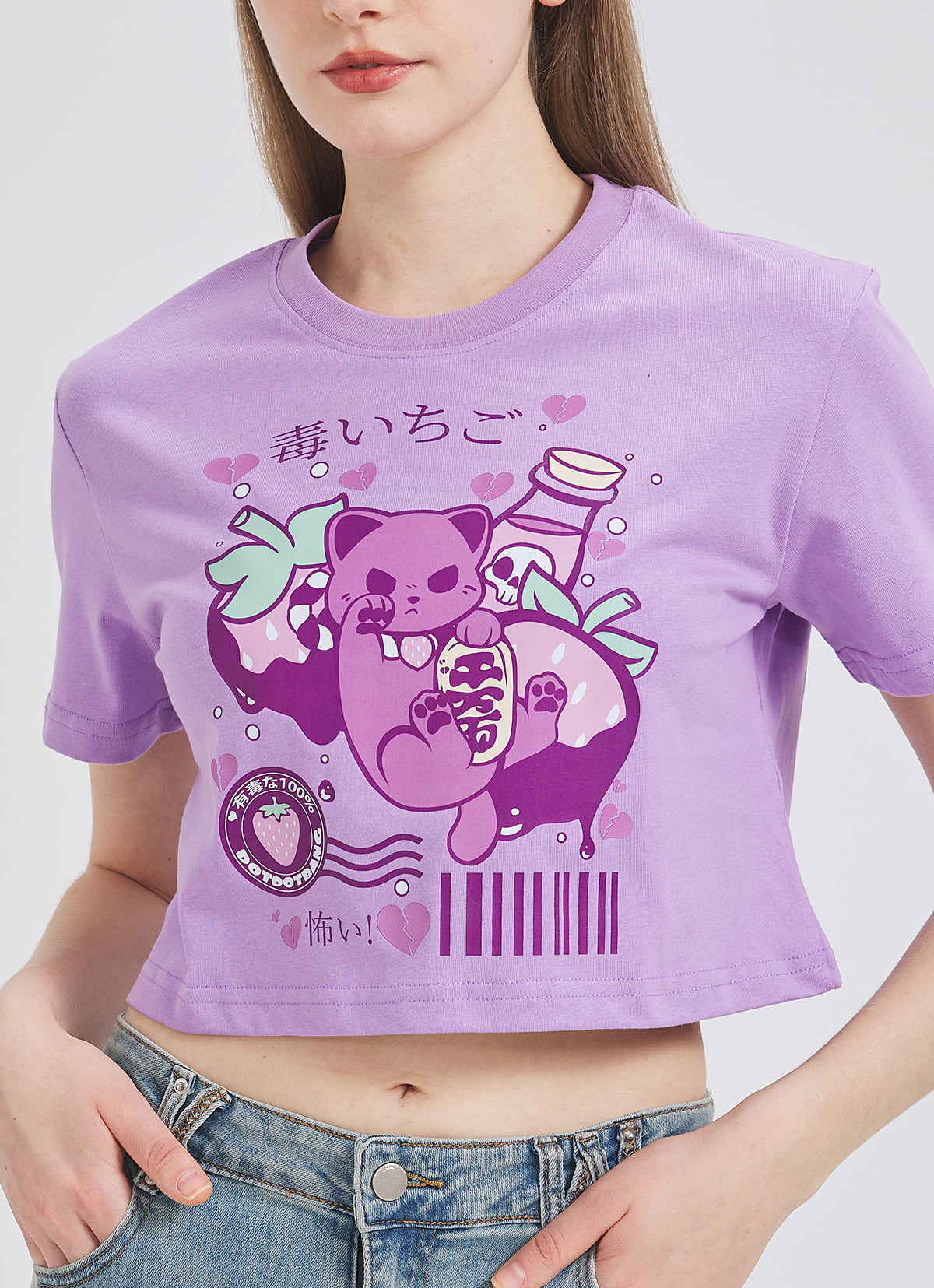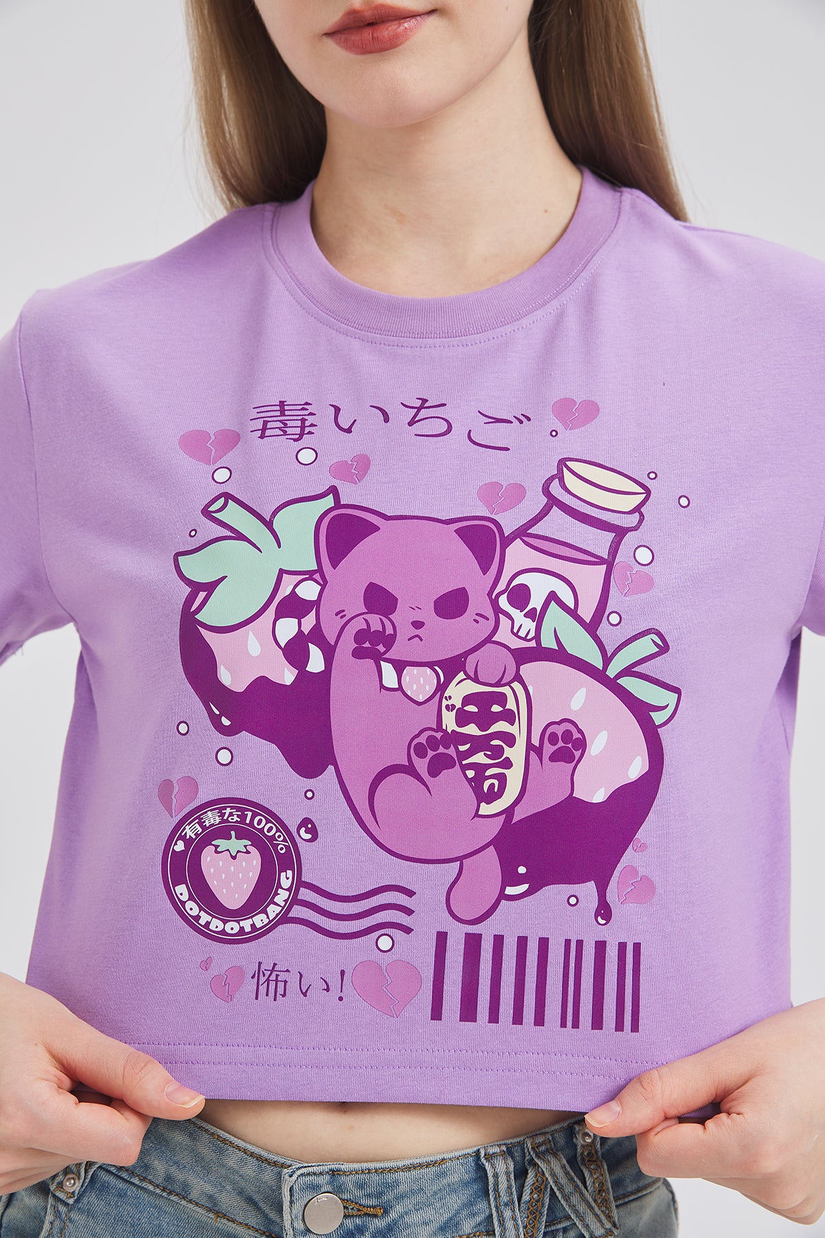 Toxic Berry Cat Cropped T-shirt Nichesou PURPLE