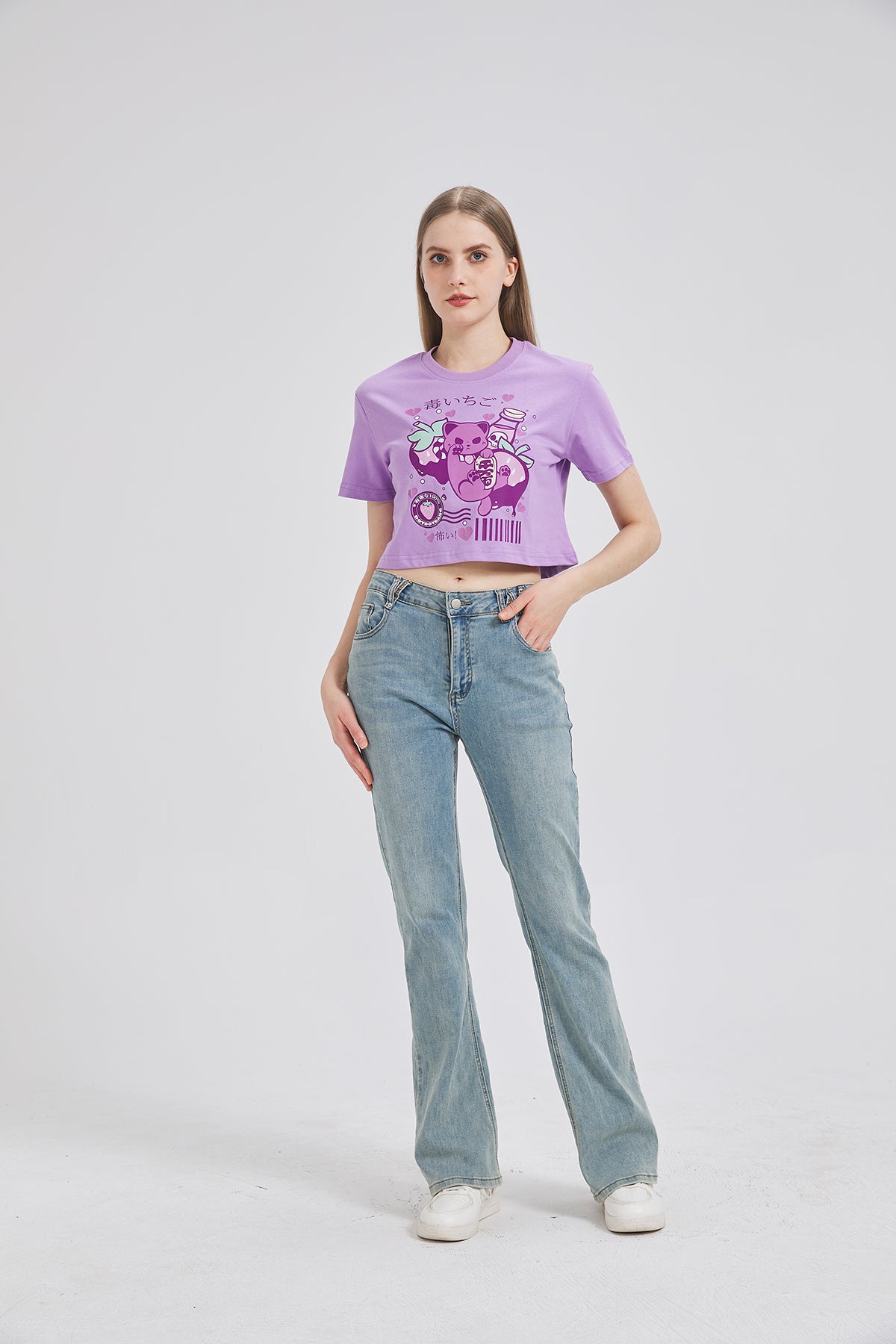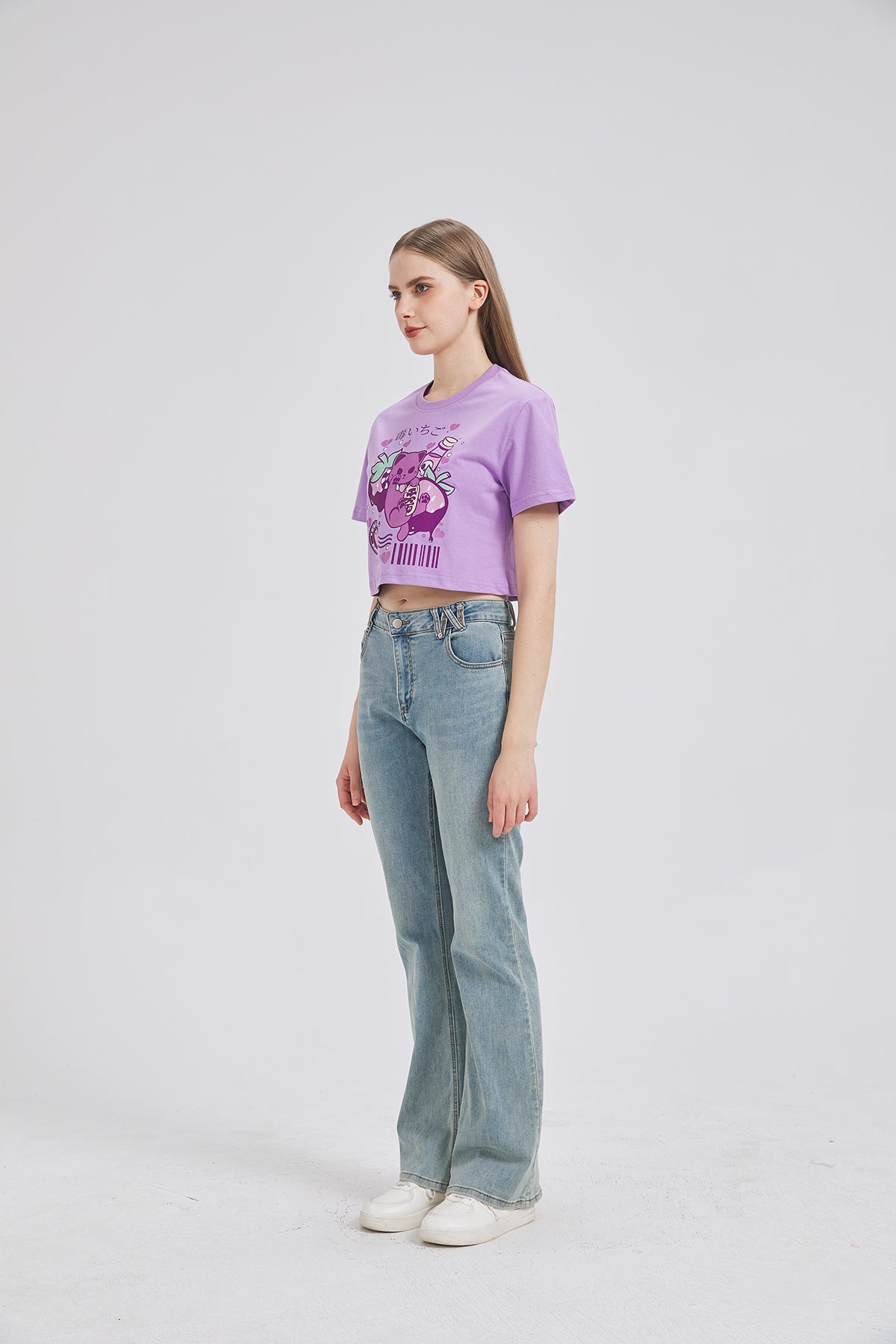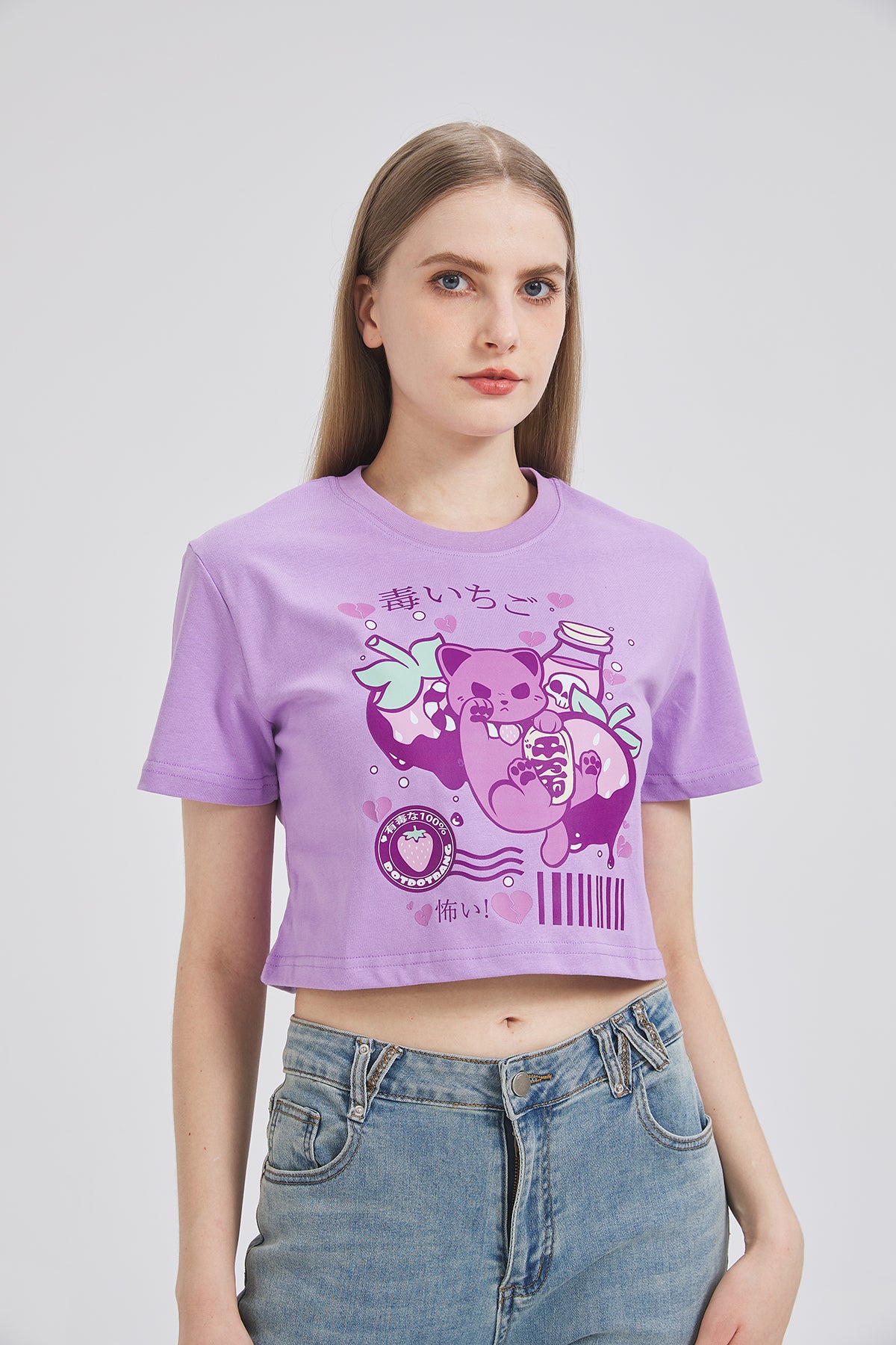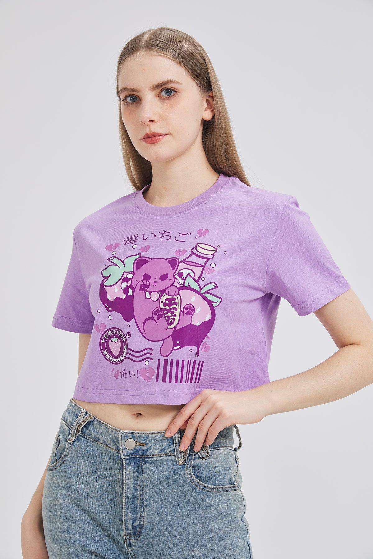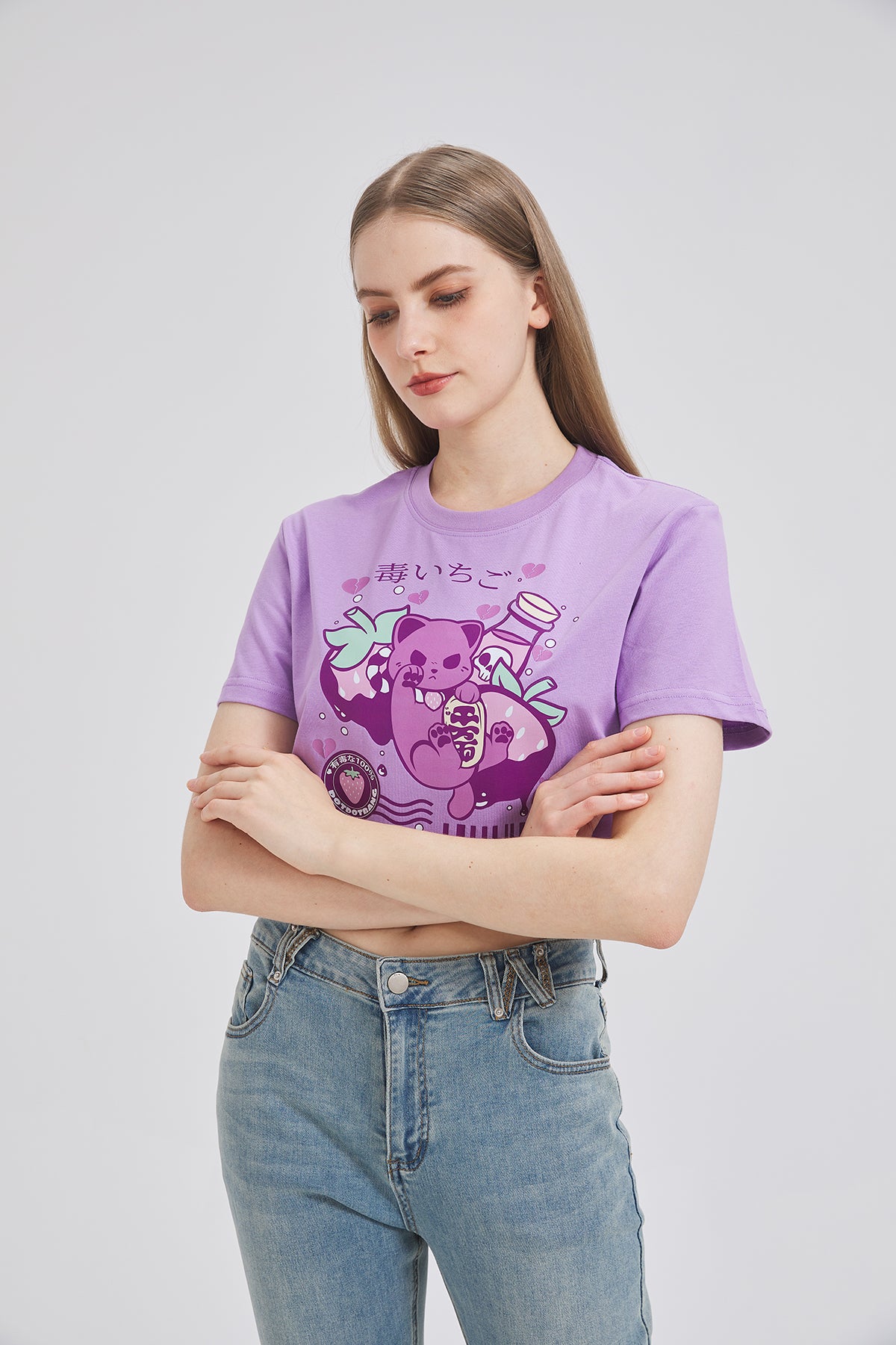 Toxic Berry Cat Cropped T-shirt Nichesou PURPLE