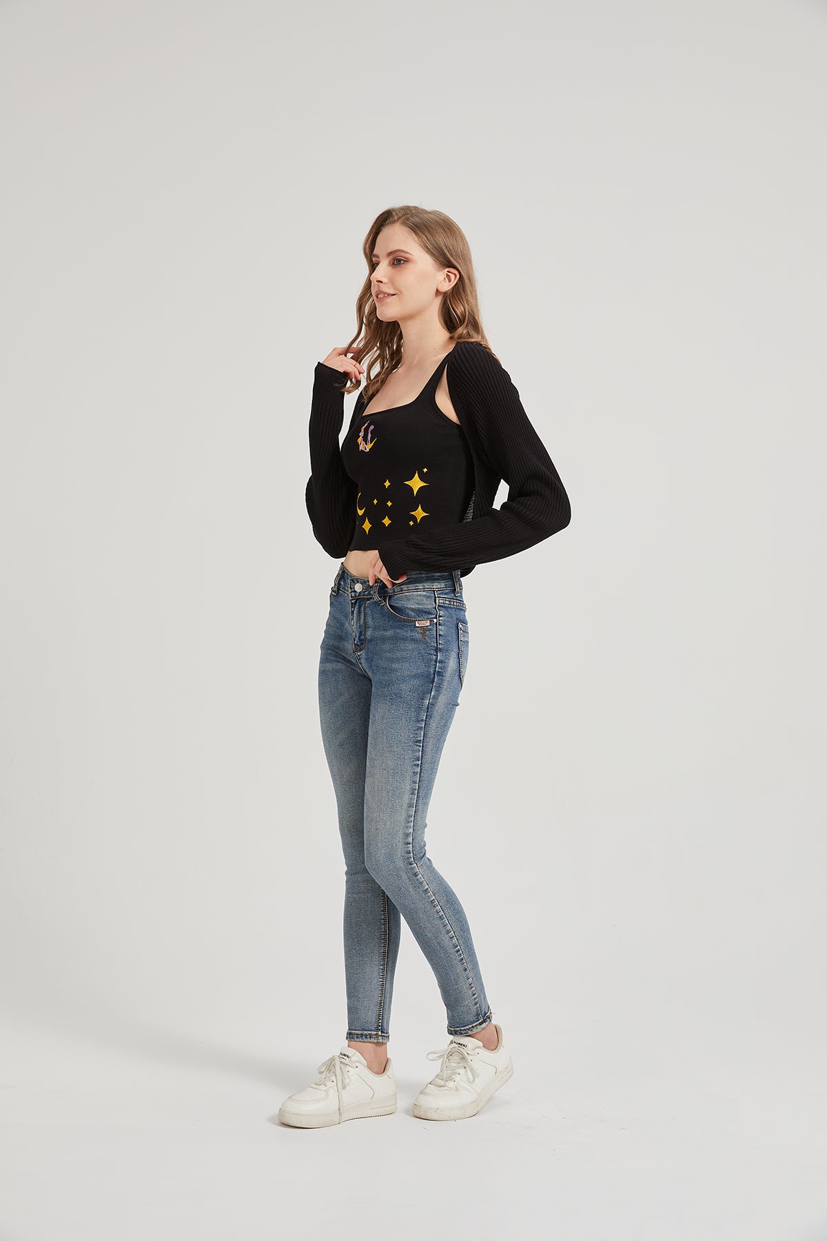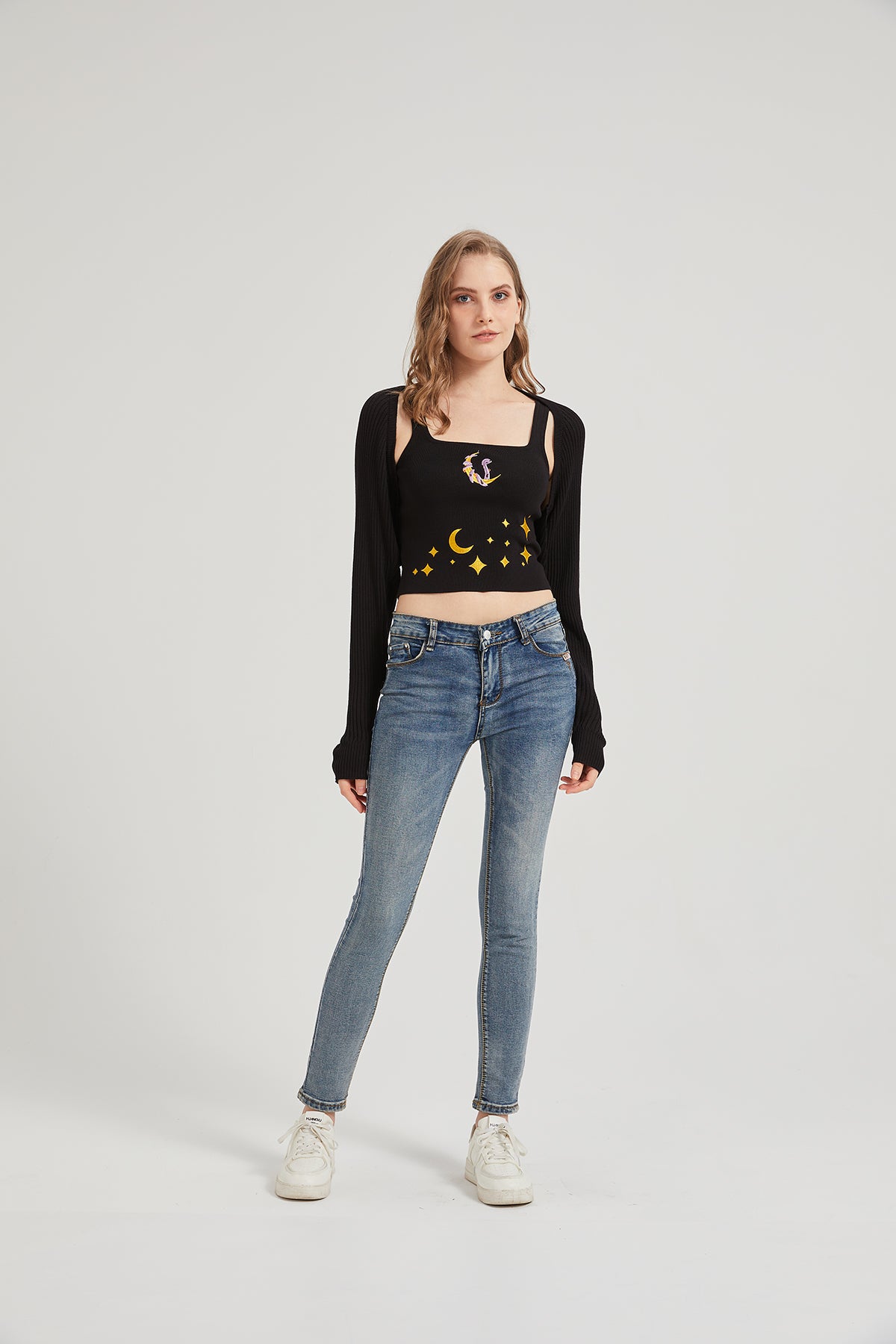 -Height: 175cm; Weight: 55kg; She wears size Free (One size fits all).