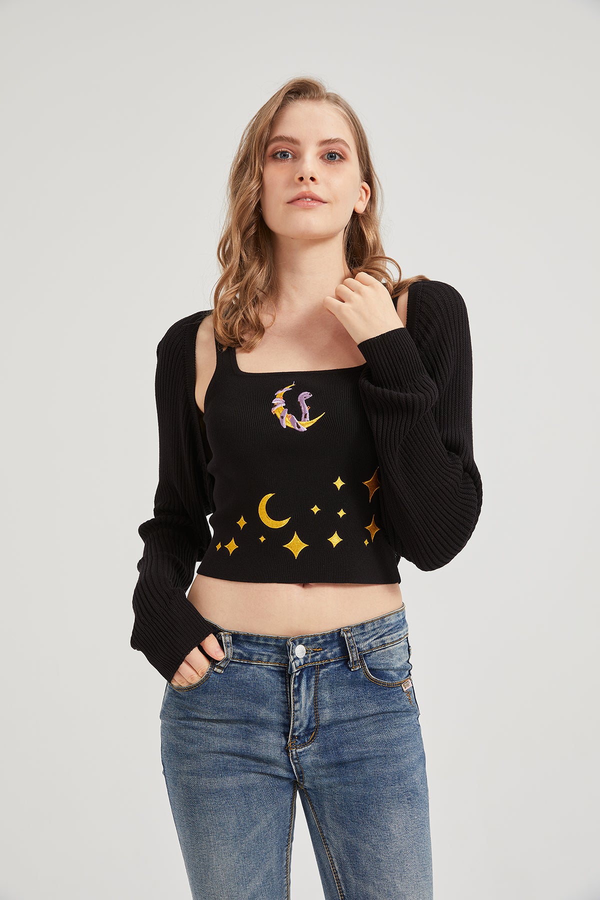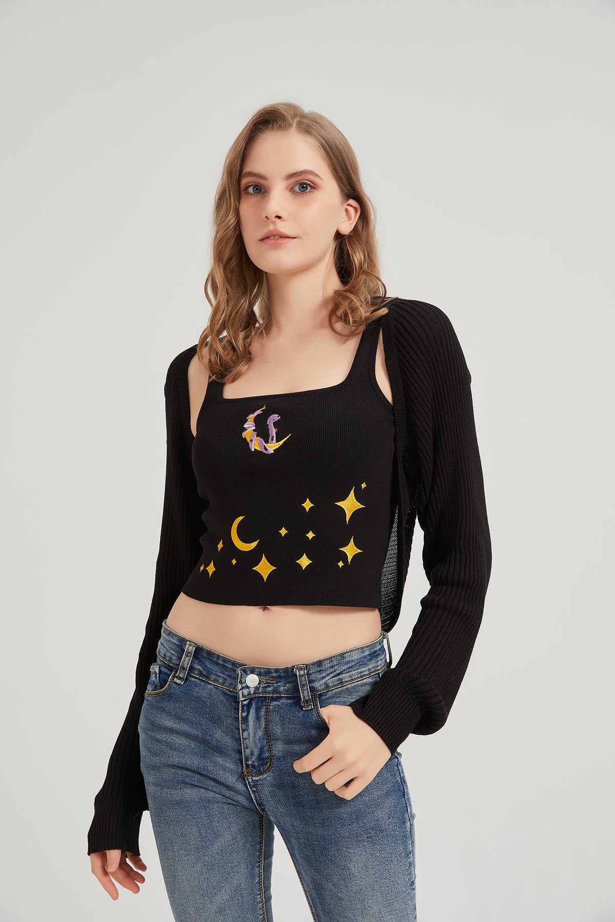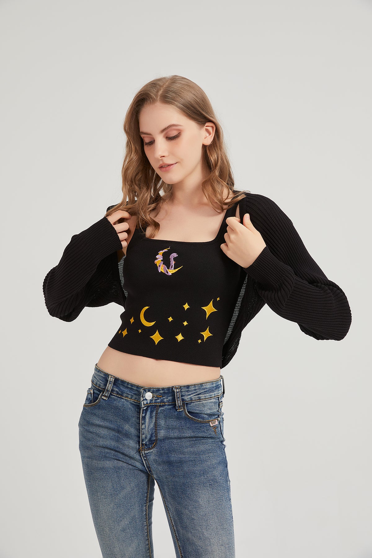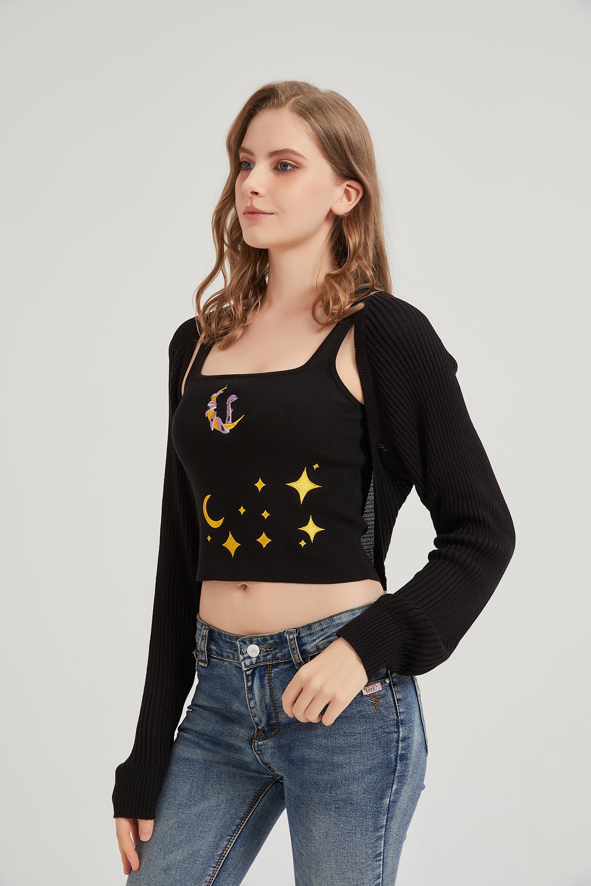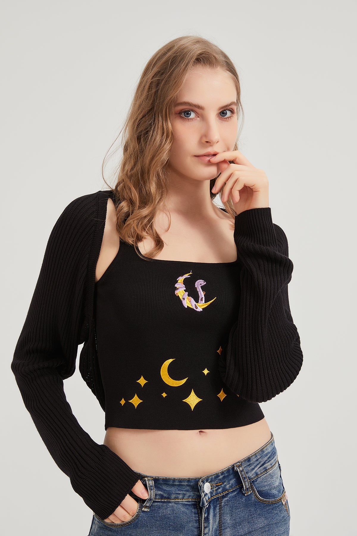 Dark Moon Night Knit Shrug Crop Cardigan