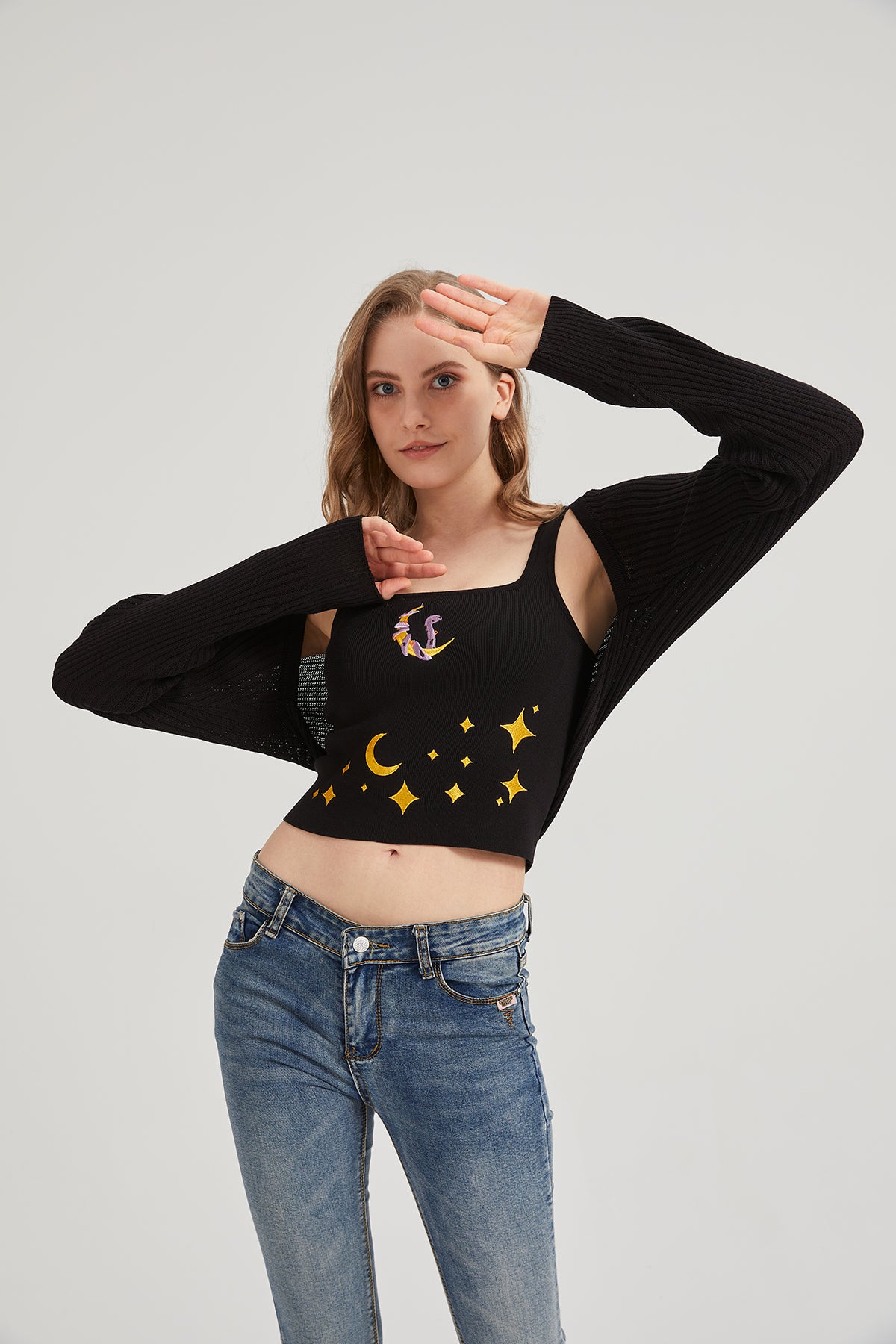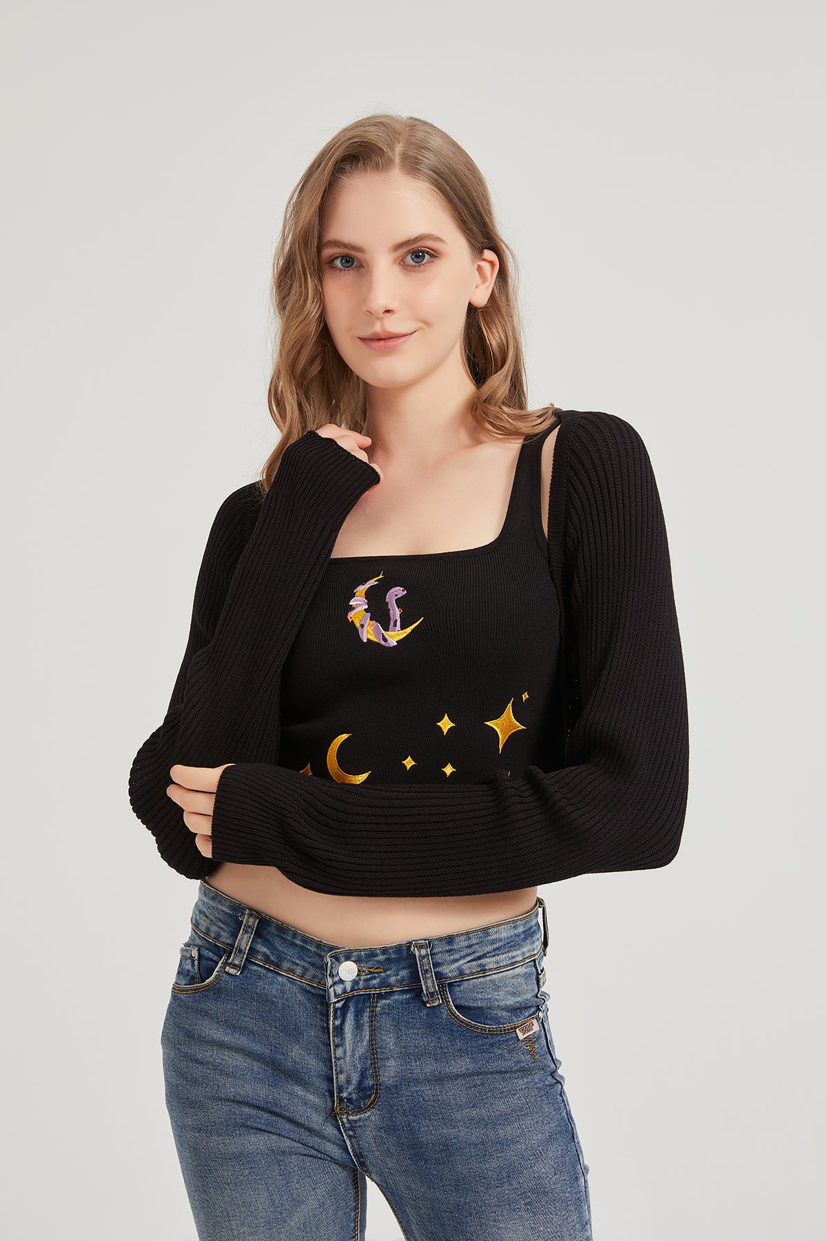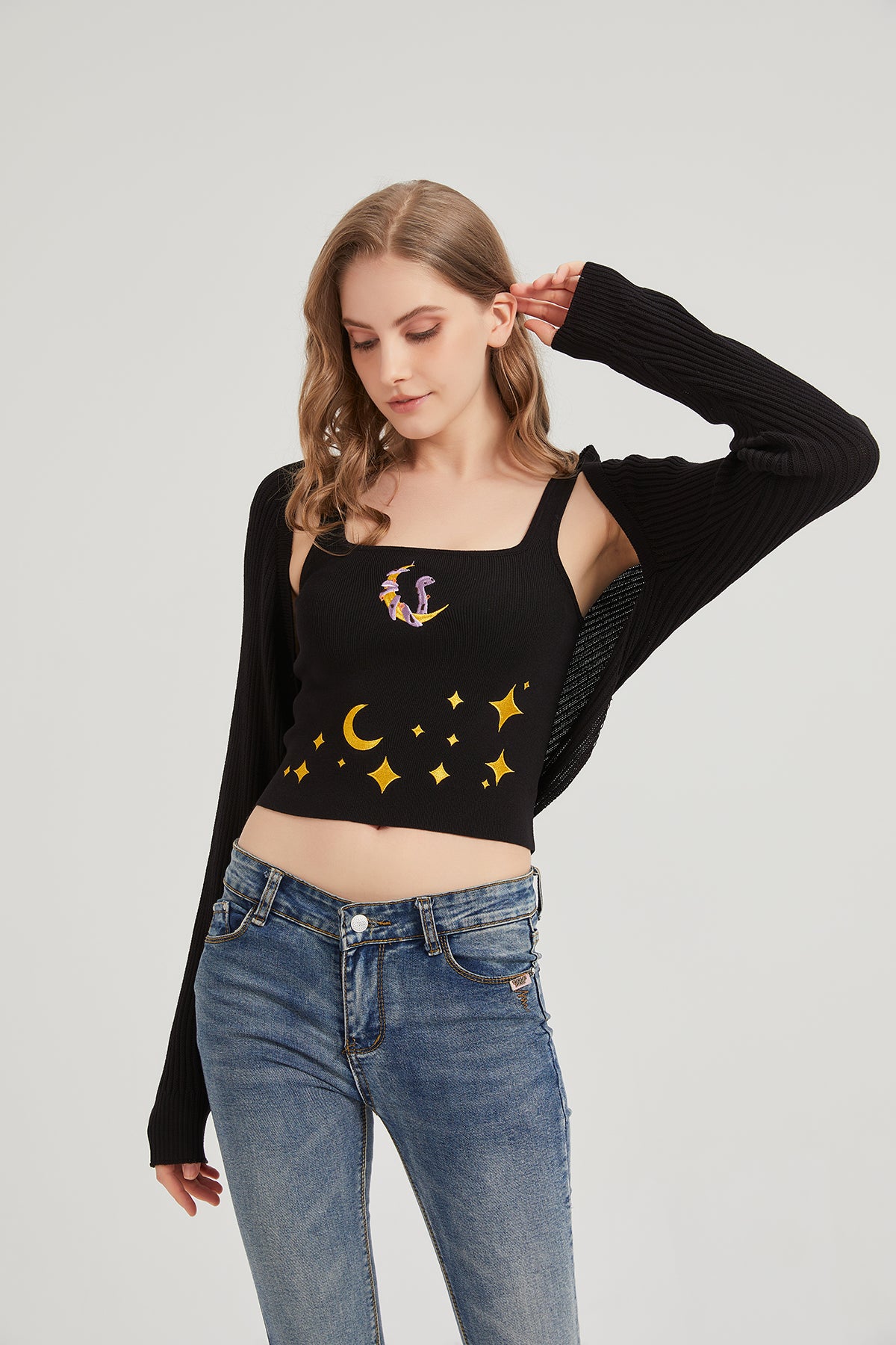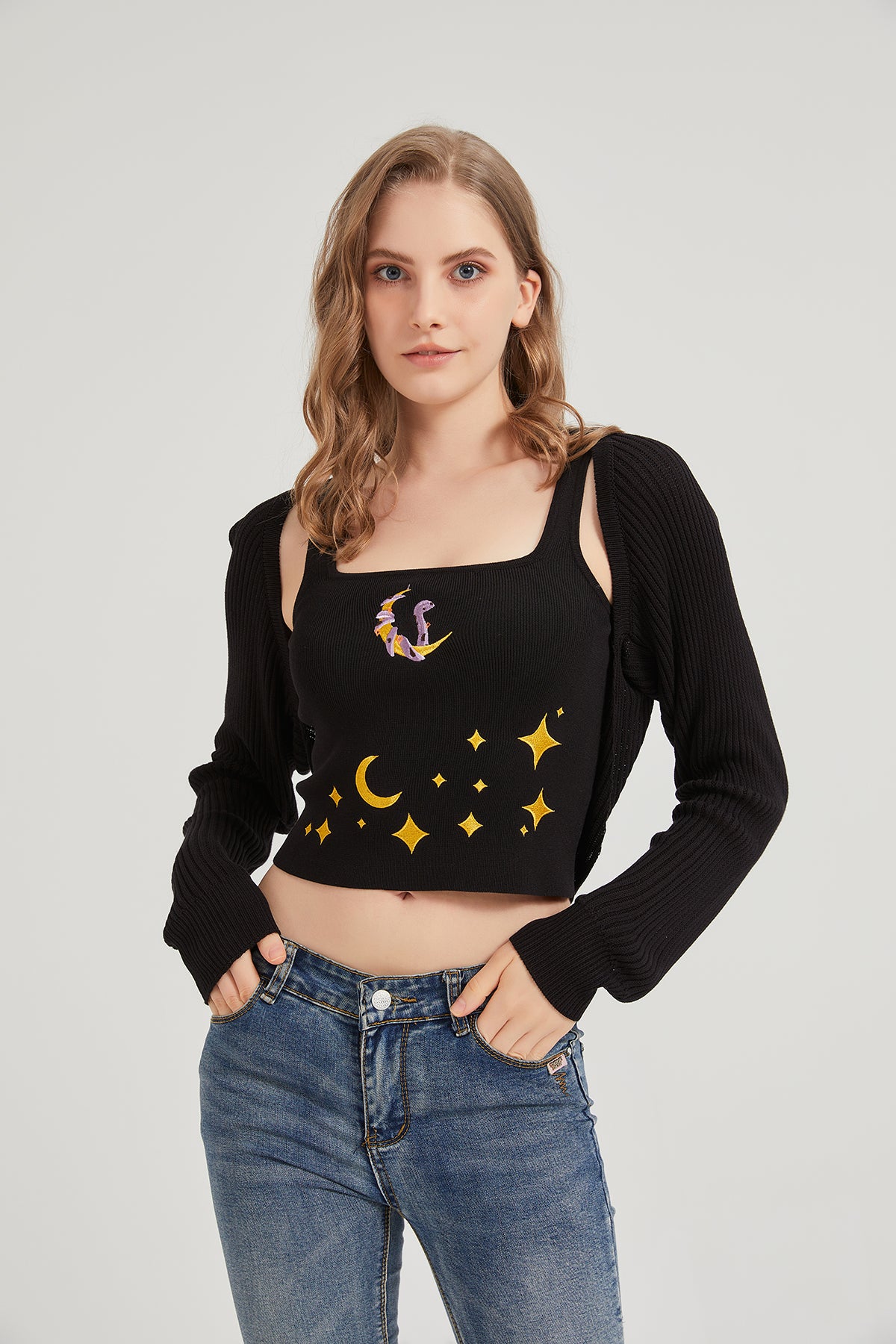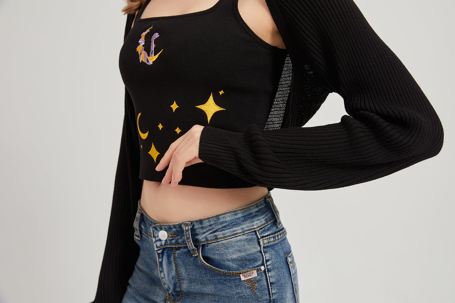 Dark Moon Night Knit Shrug Crop Cardigan