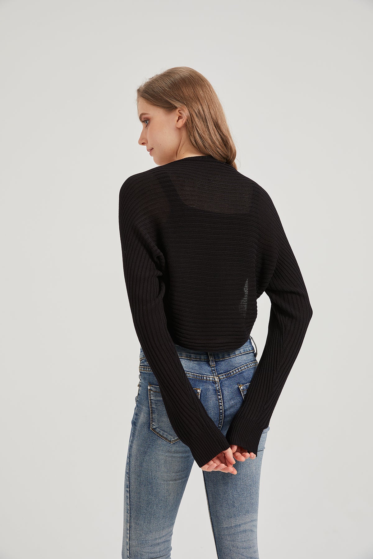 Features: Cropped Fit; A sweater-knit cardigan featuring batwing shrug style, rounded hem back; Lightweight cardigan good for summer/spring; Long sleeves
