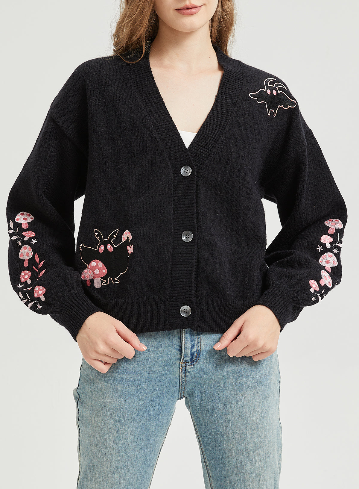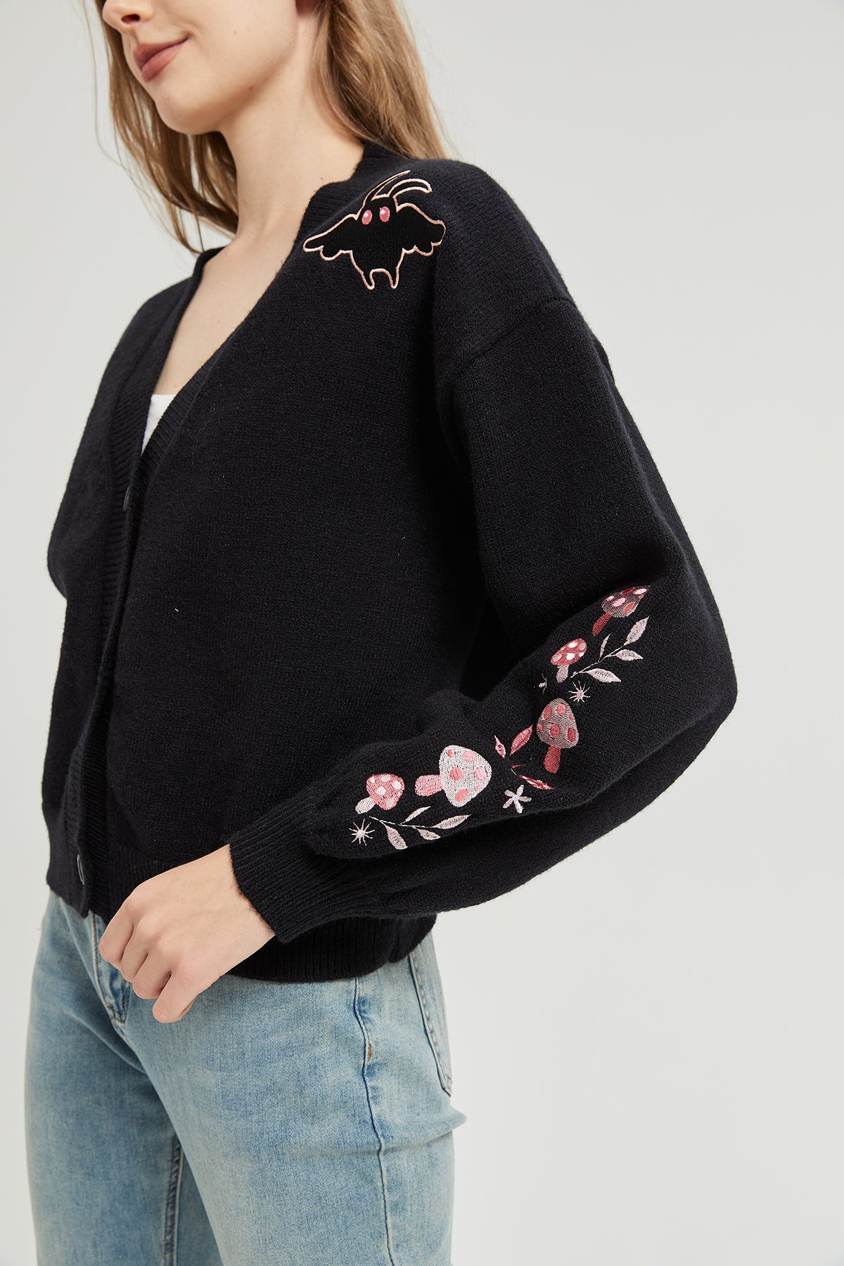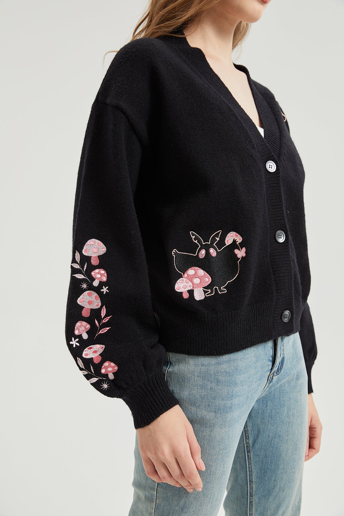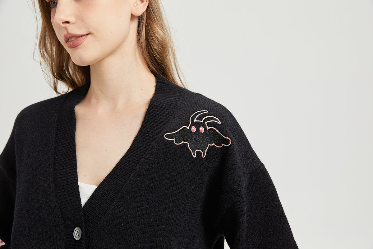Pink Mushroom Mothman Embroidered Knit Cardigan Nichesou