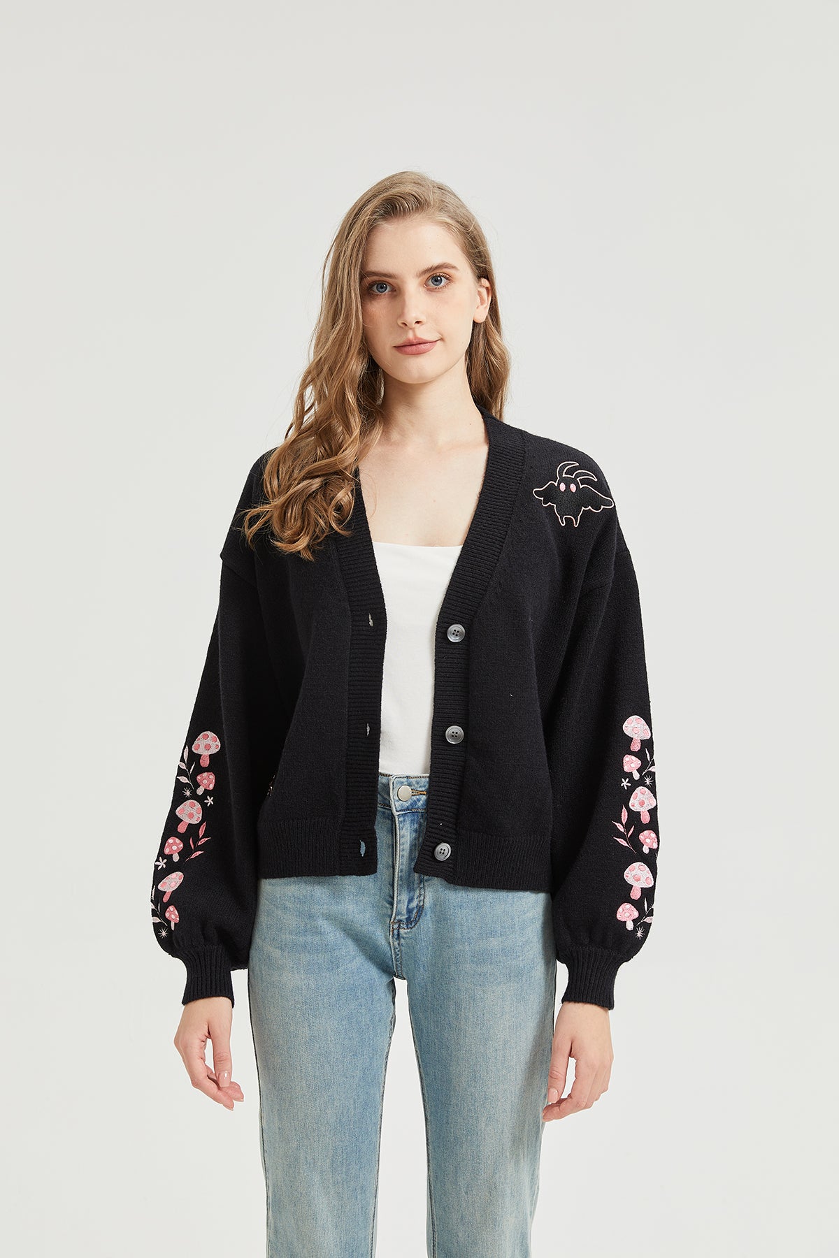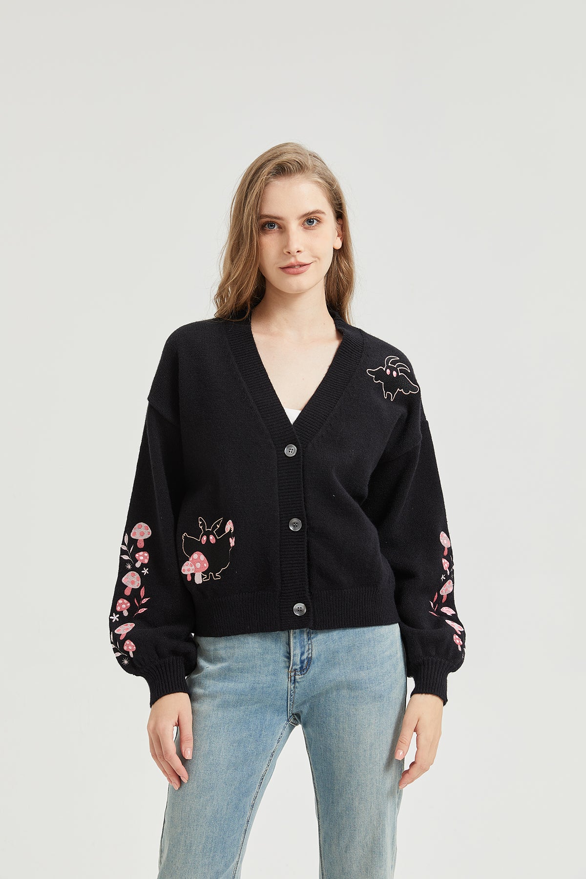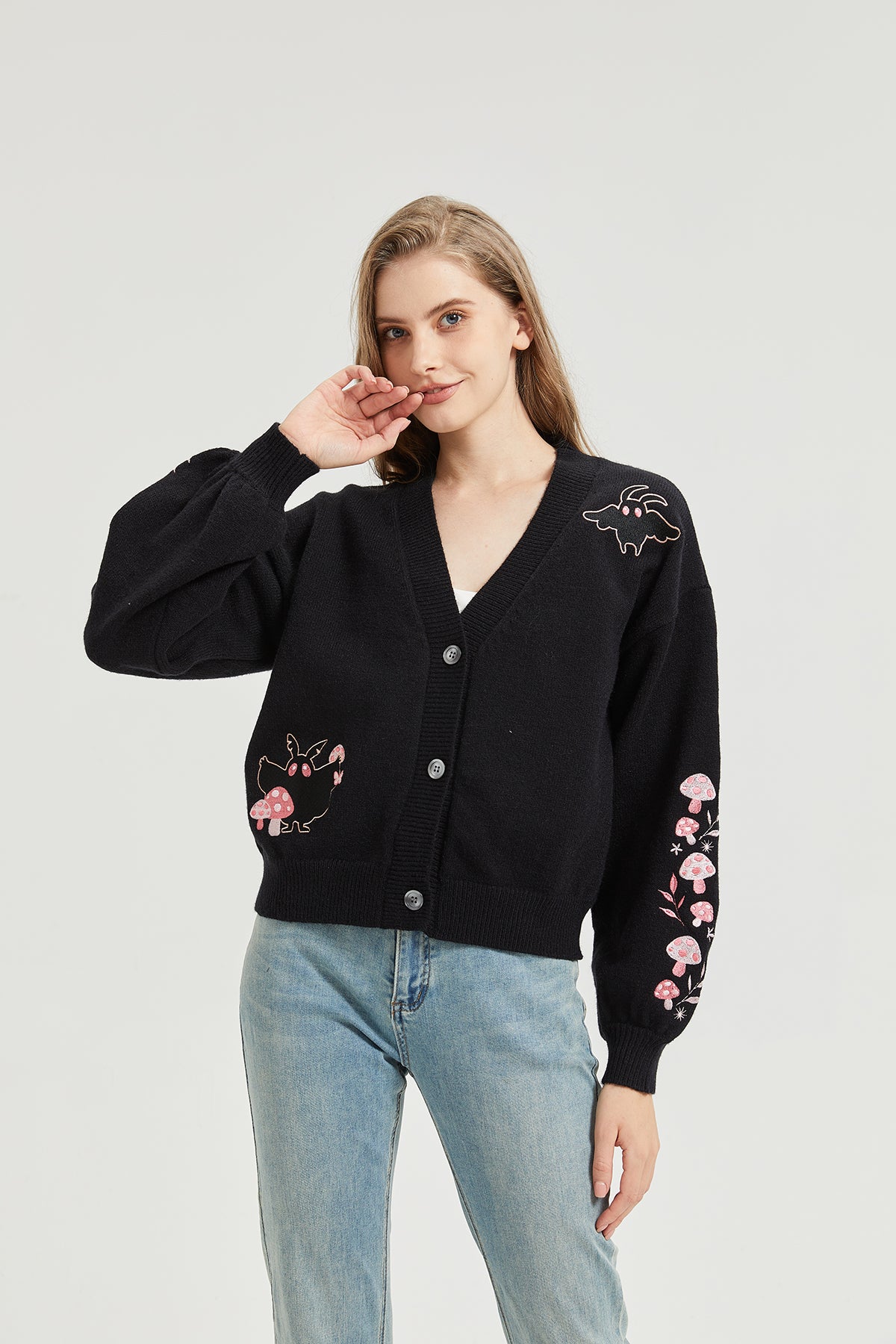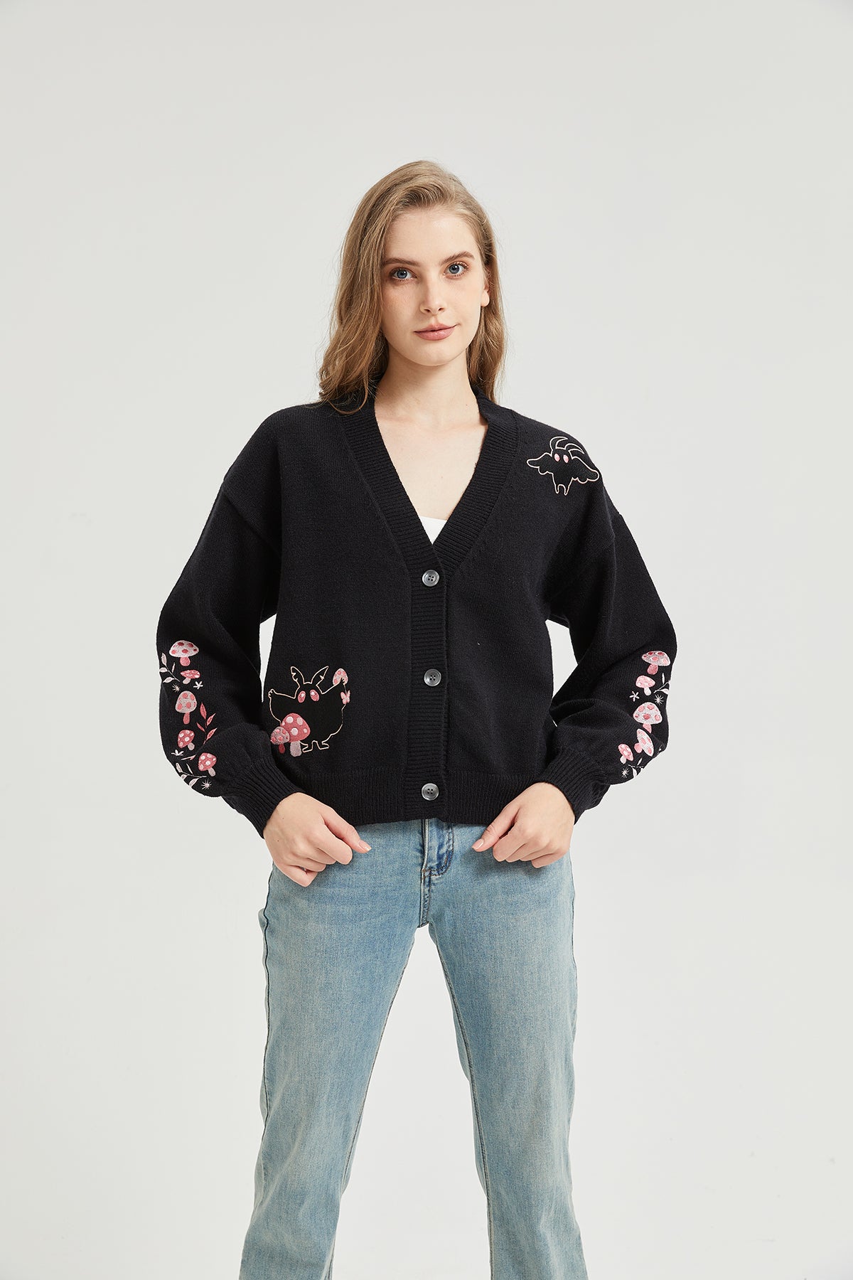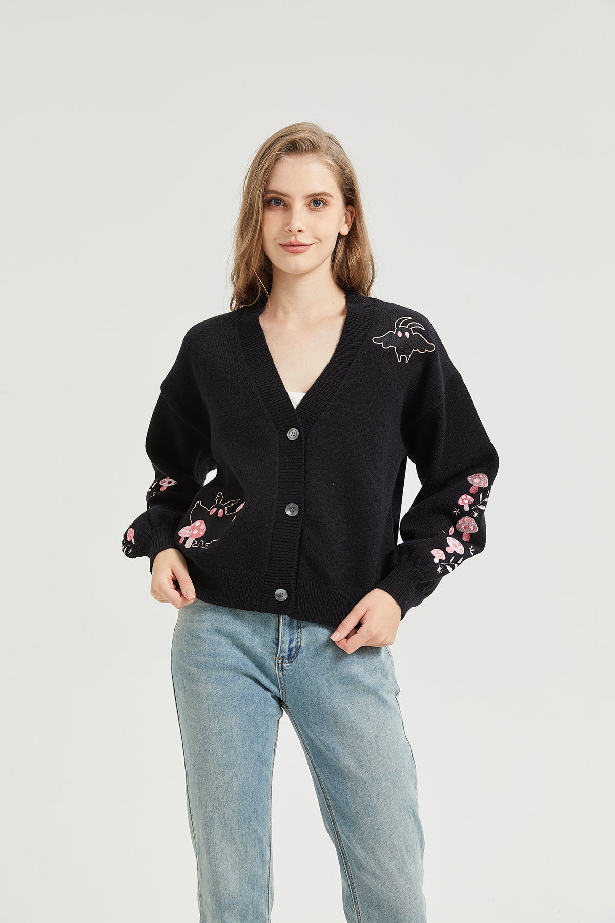 Pink Mushroom Mothman Embroidered Knit Cardigan Nichesou