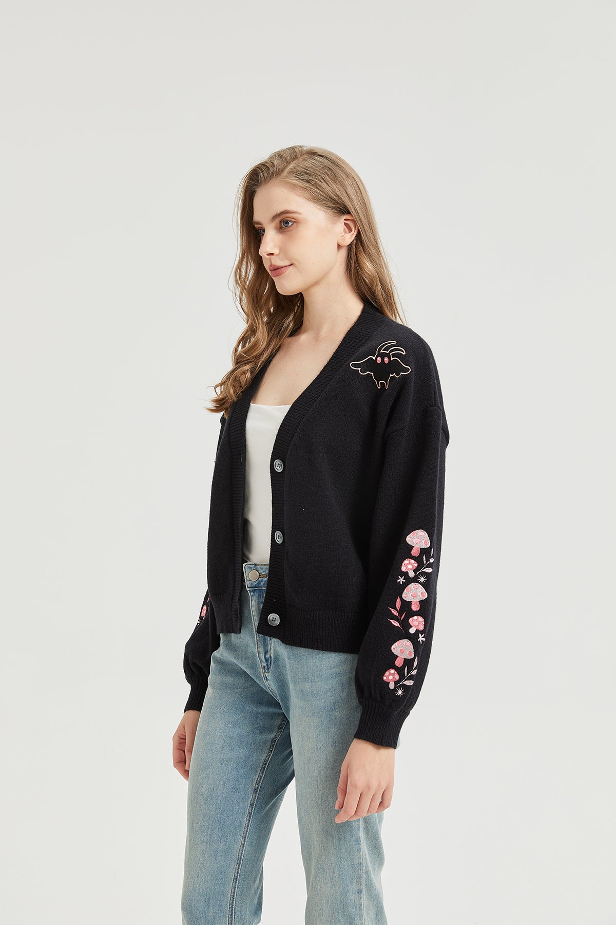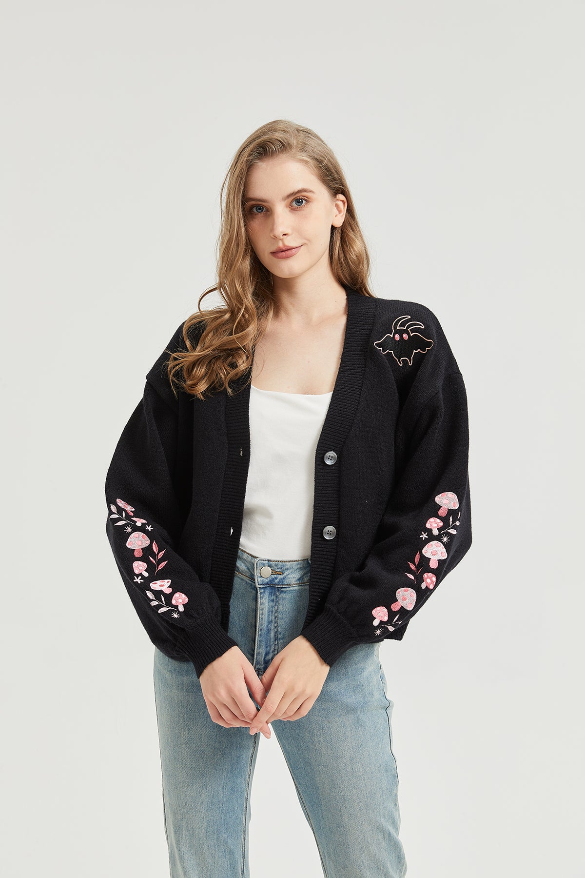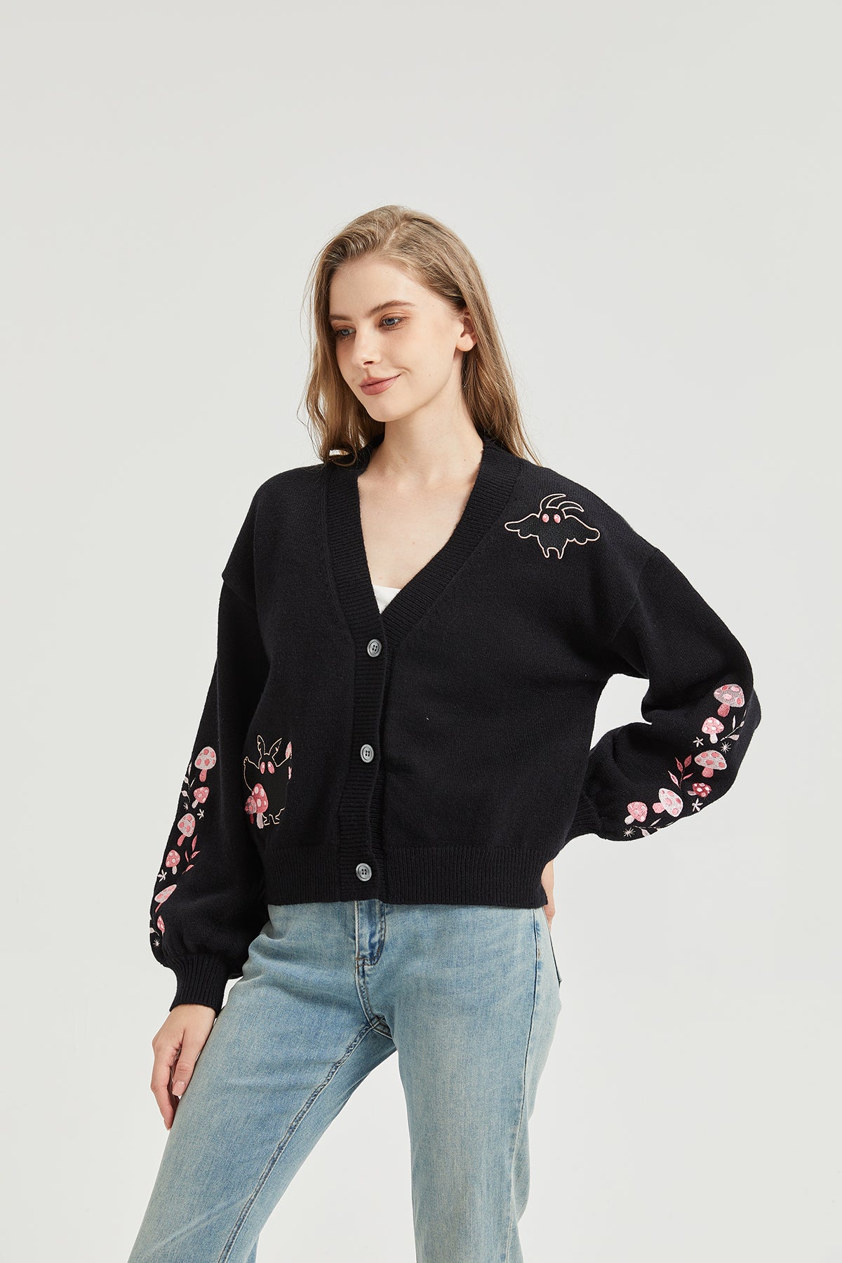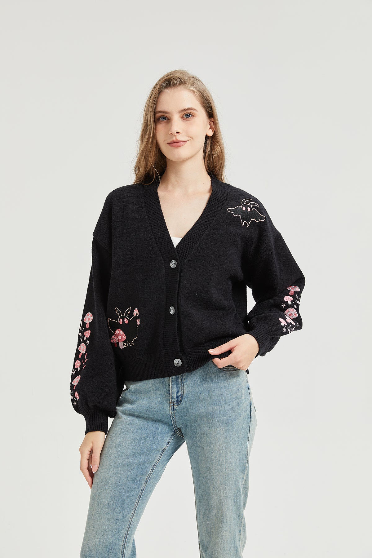 Pink Mushroom Mothman Embroidered Knit Cardigan Nichesou