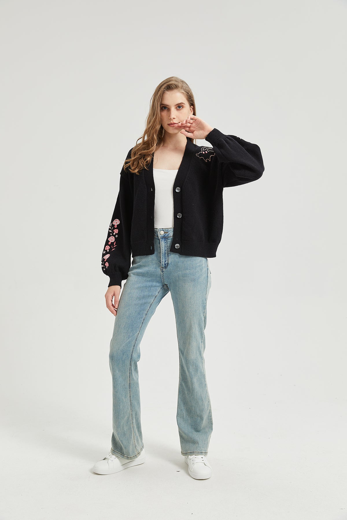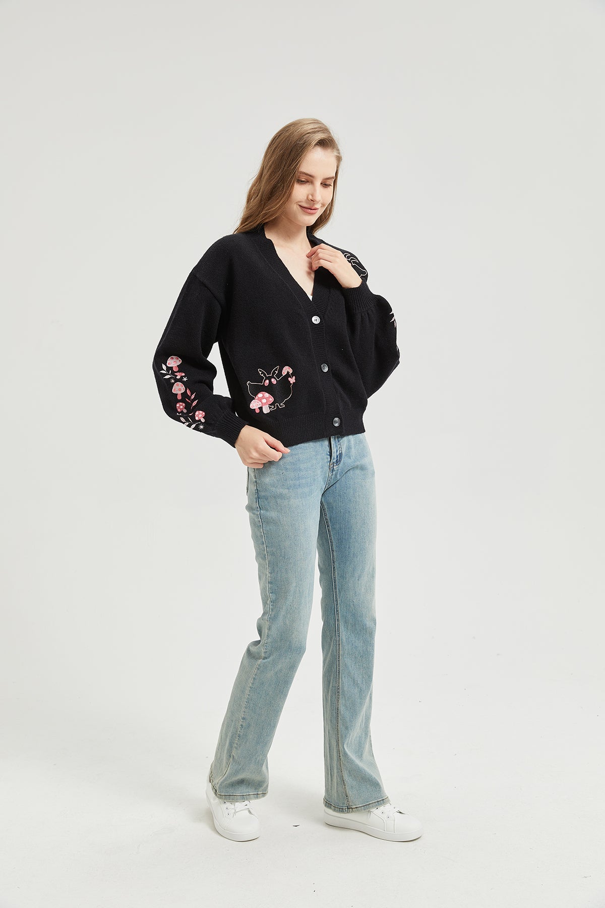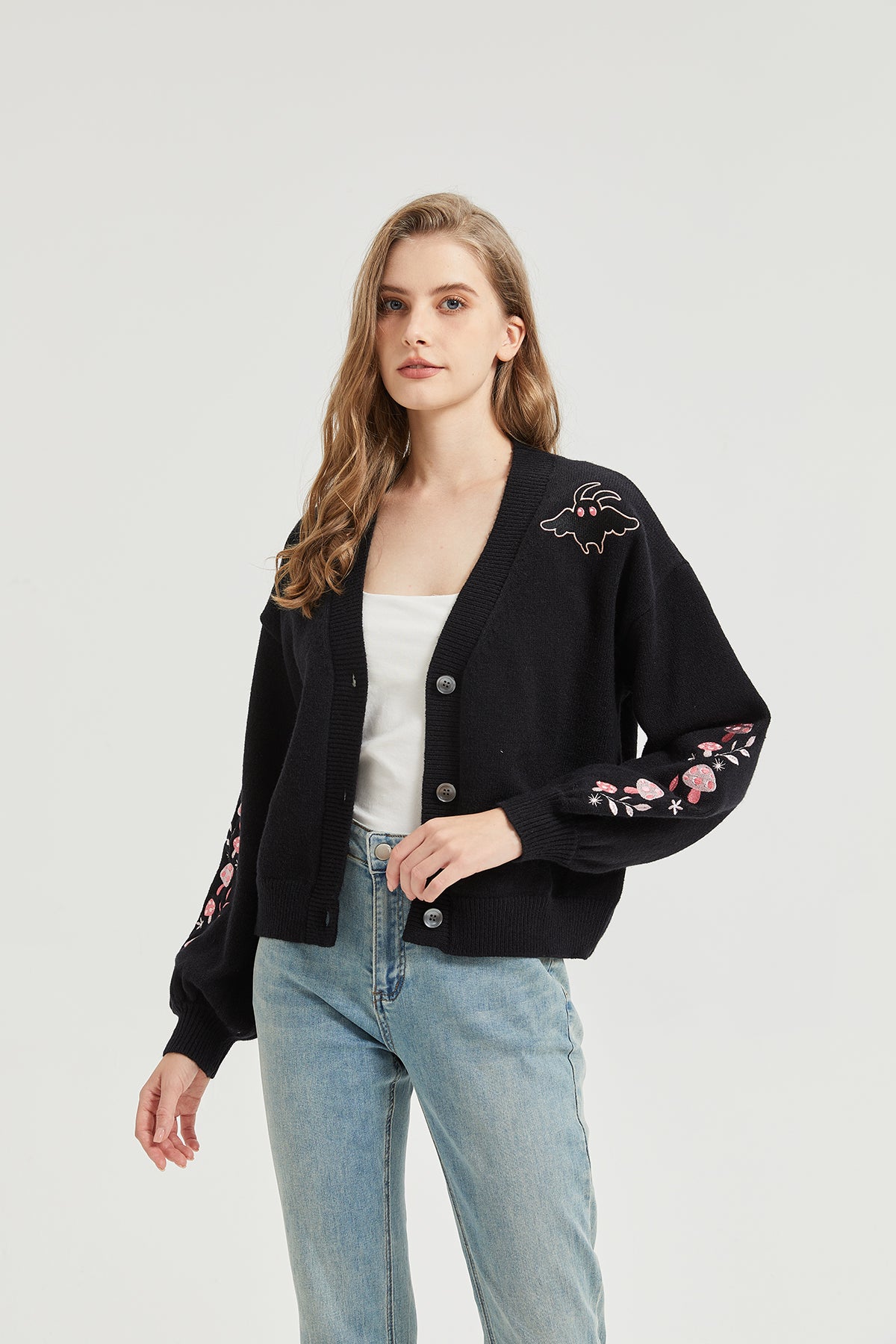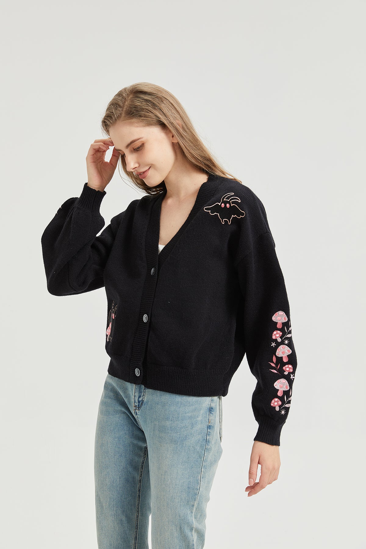 Pink Mushroom Mothman Embroidered Knit Cardigan Nichesou