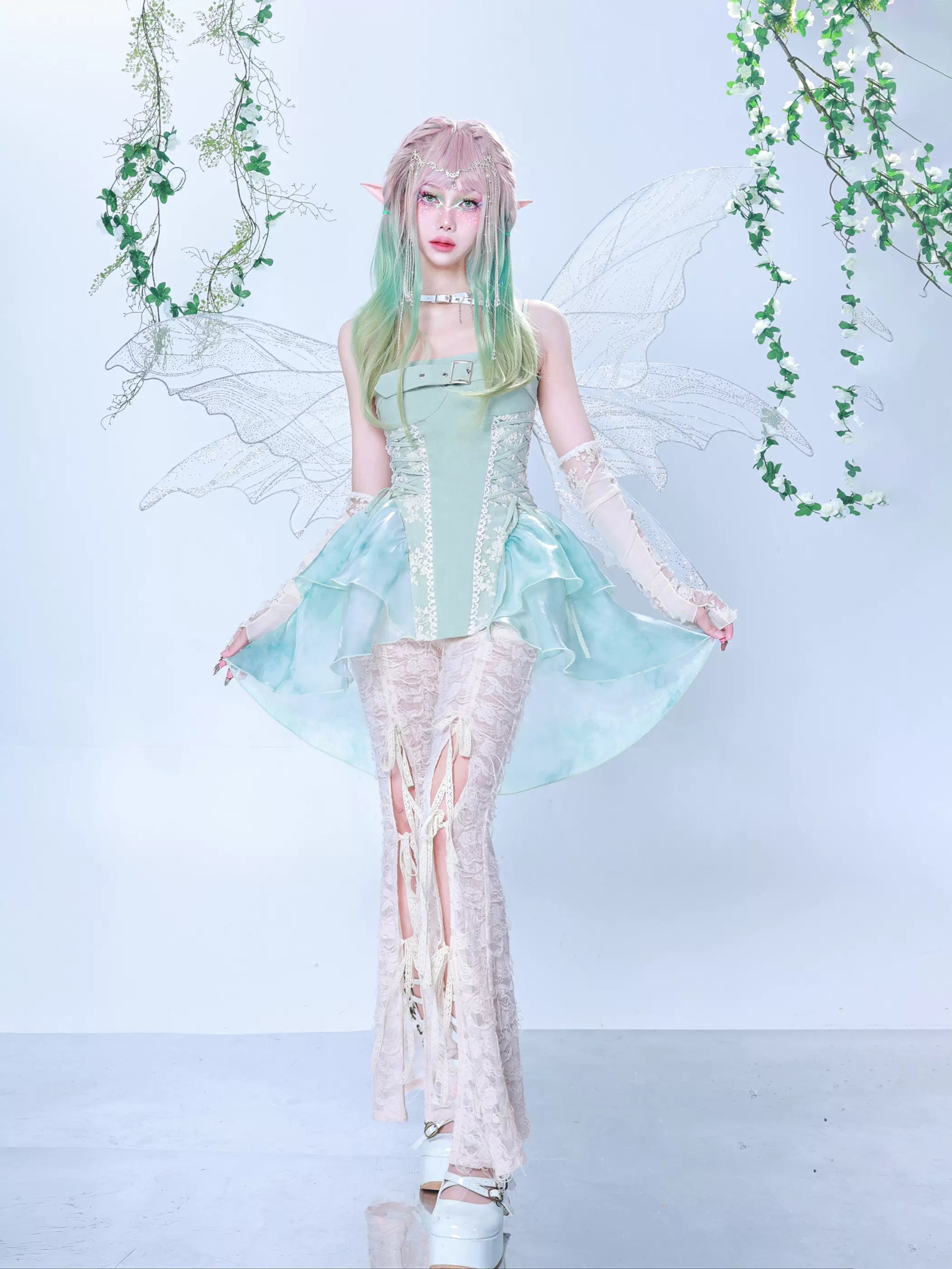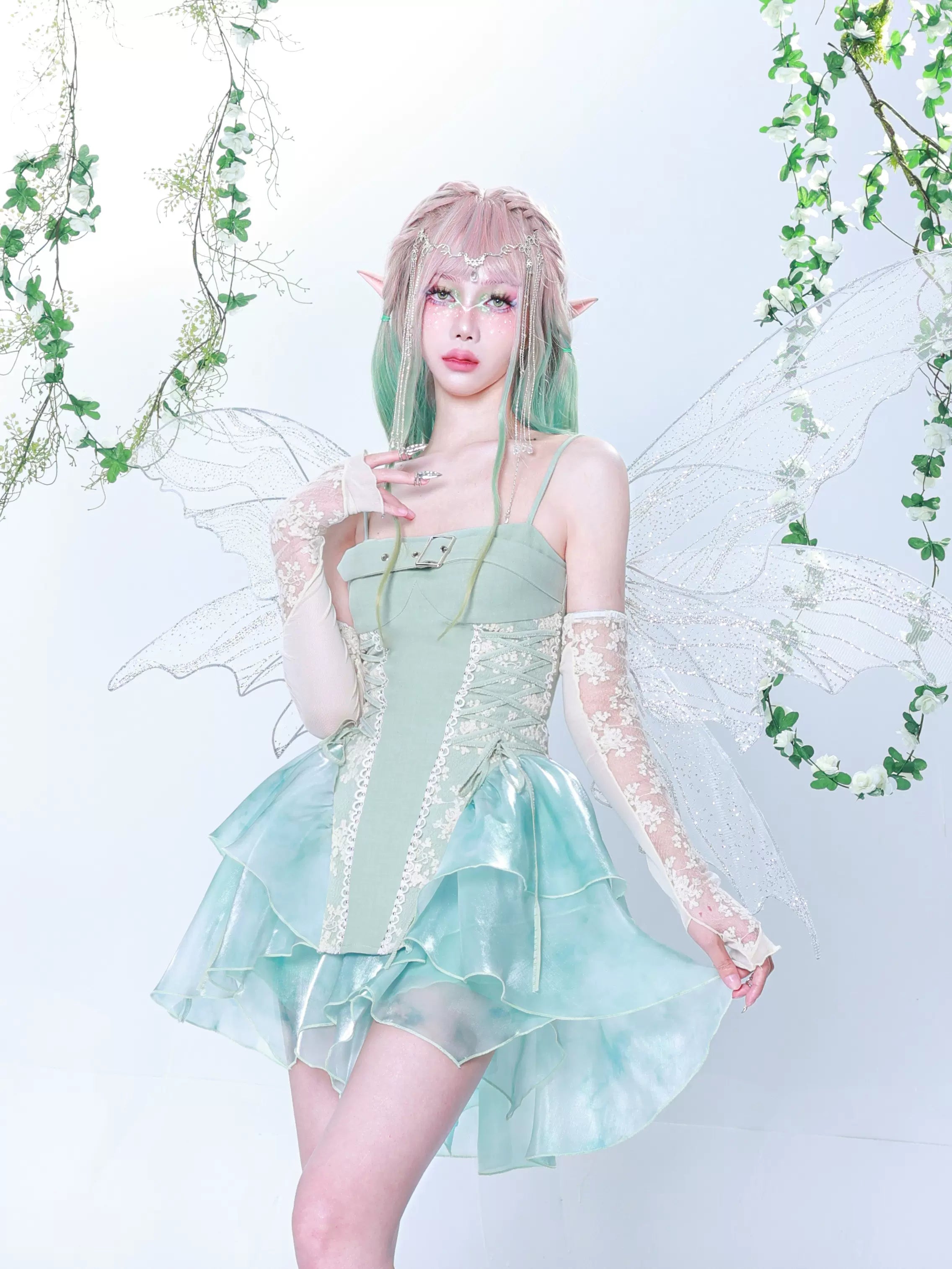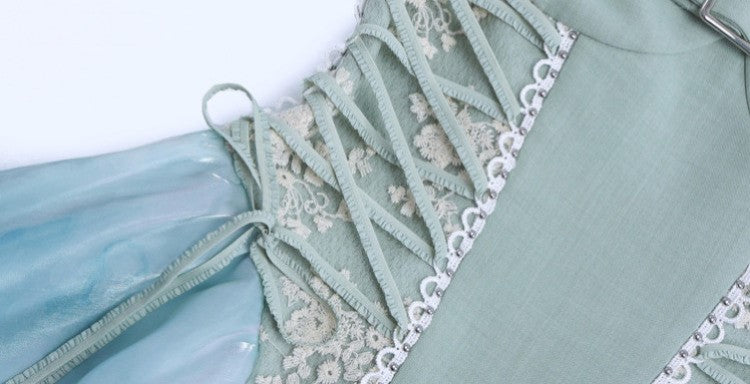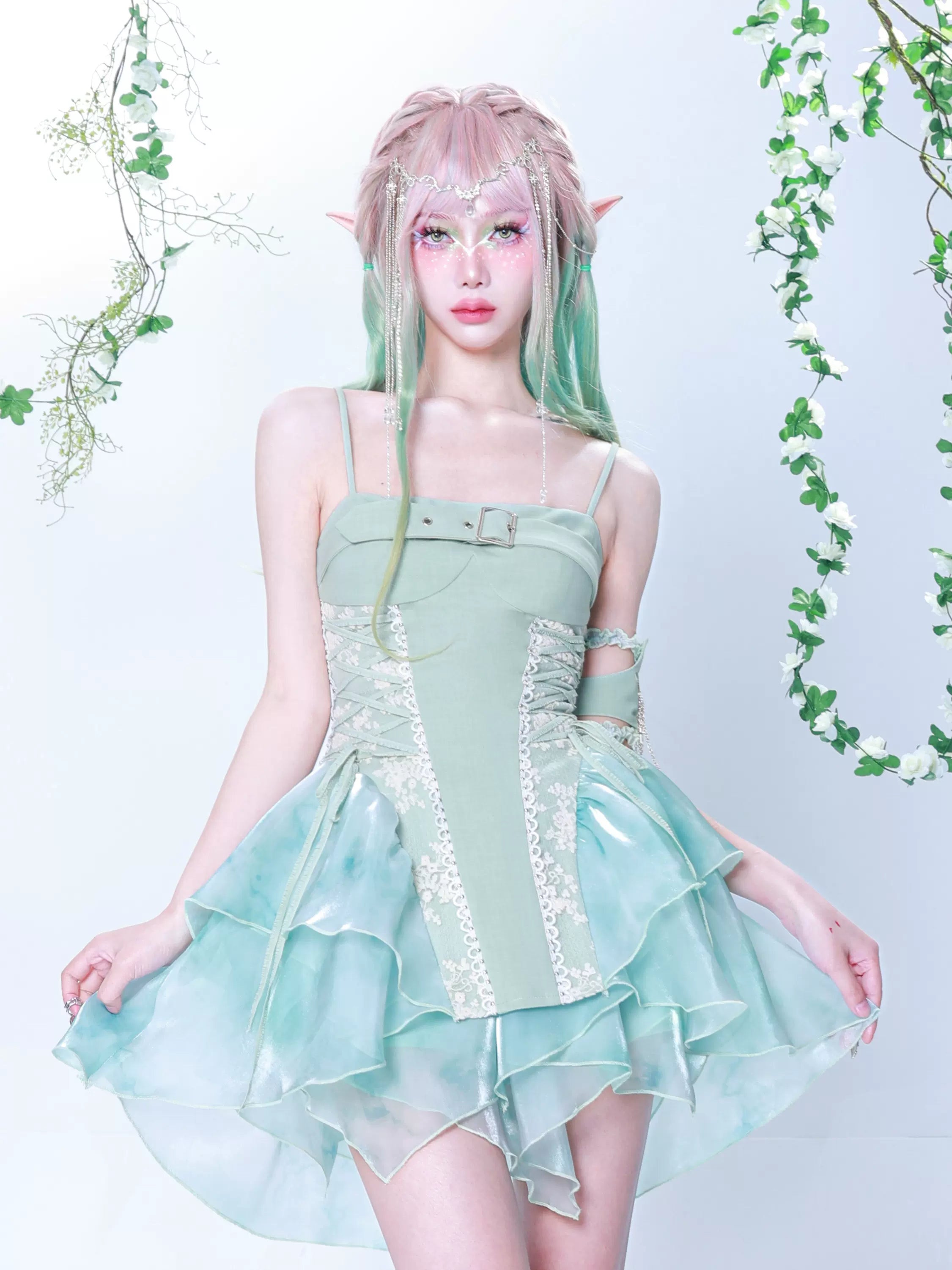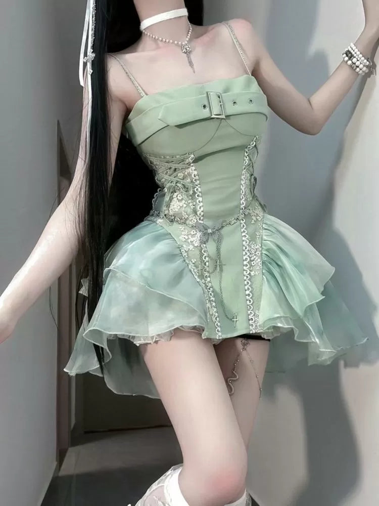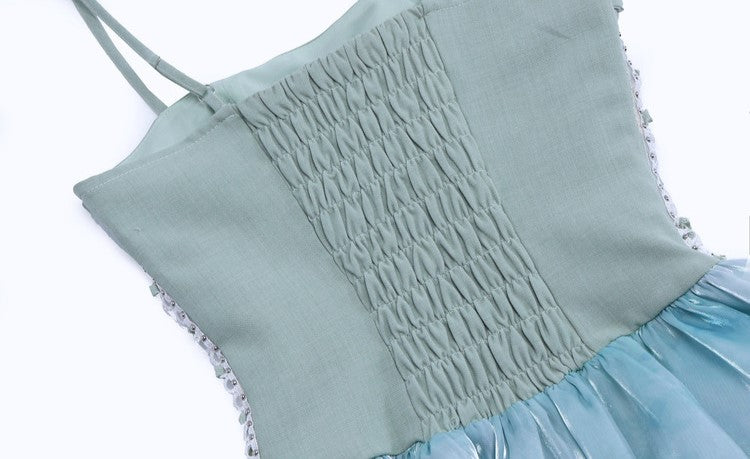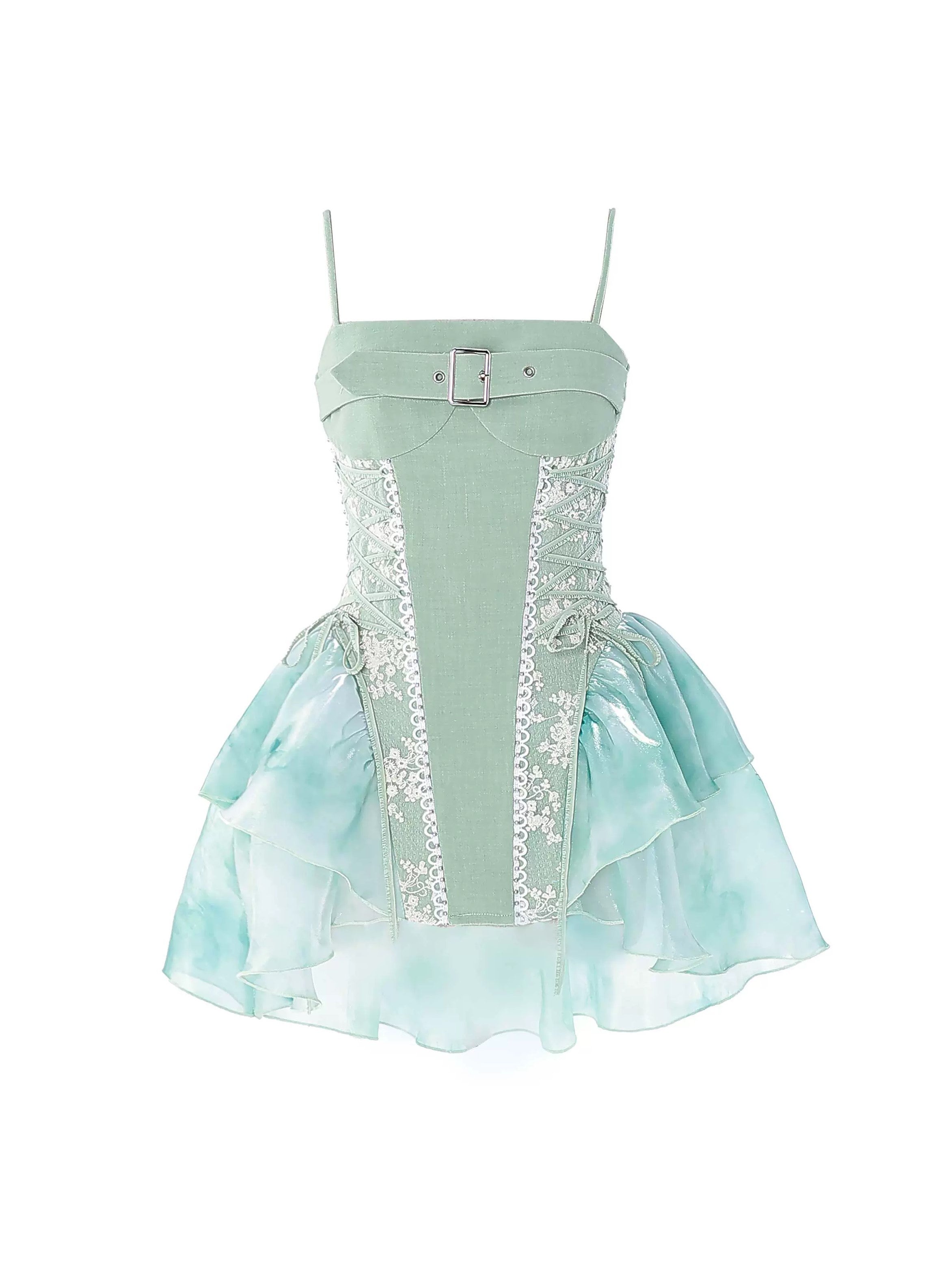 Turquoise Elves Buckle Lace-up Waist Spaghetti Straps Dress