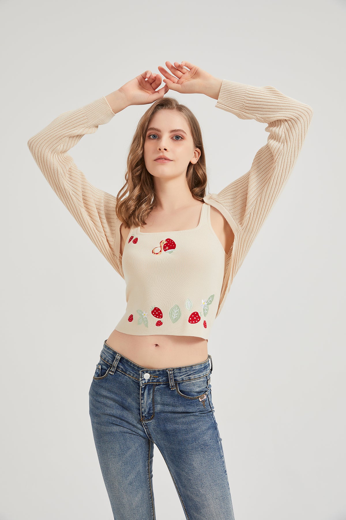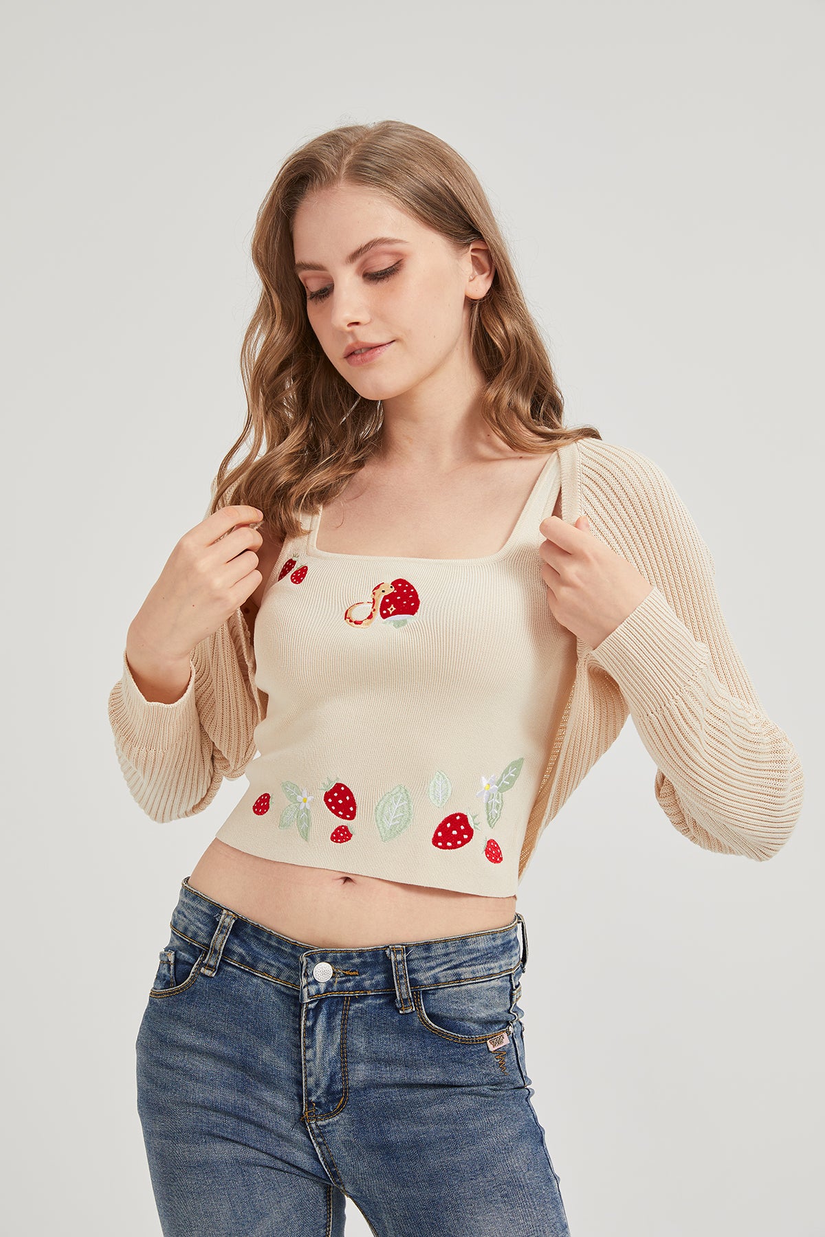 Please note: This price includes a cardigan only, other items shown in the pictures are not included. For the tank top, please purchase here.