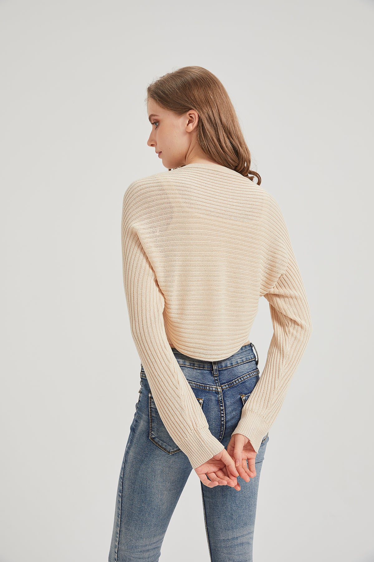 Features: Cropped Fit; A sweater-knit cardigan featuring batwing shrug style, rounded hem back; Lightweight cardigan good for summer/spring; Long sleeves