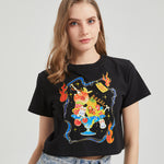 Features: Original graphic design; Premium crop top; Relaxed fit; Cropped Length; 100% combed cotton.