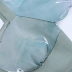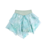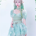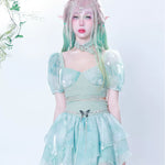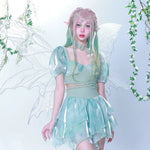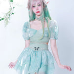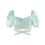 Turquoise Elves Self-tie Sash Waist Puff Sleeves Cropped Top Skirt