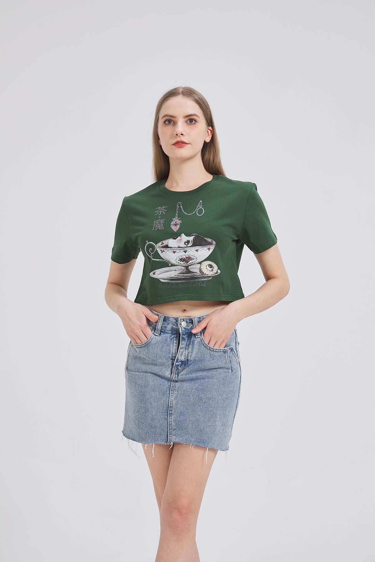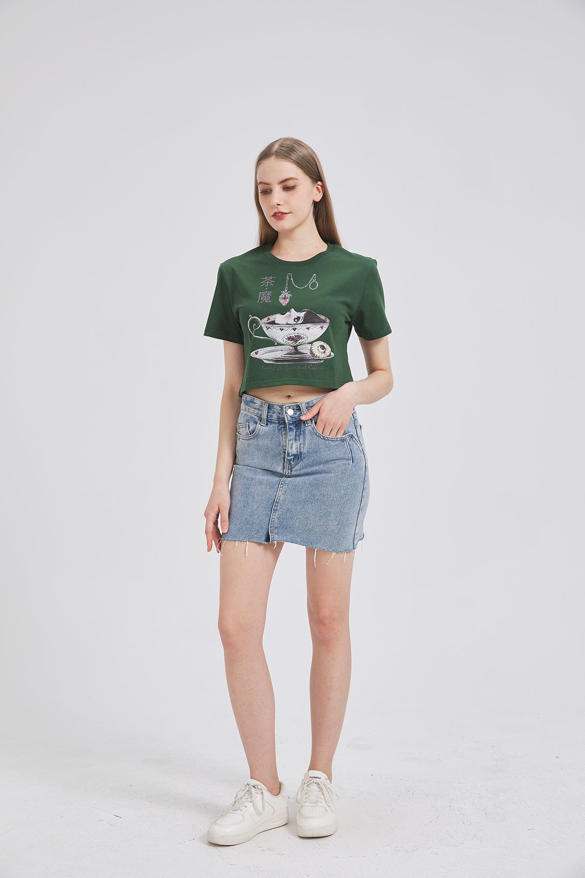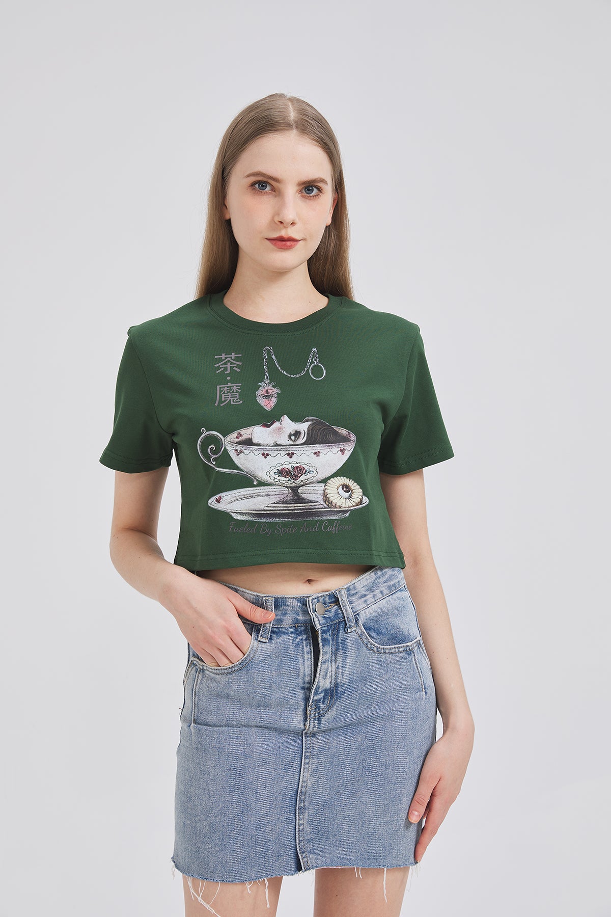 Tea Cup Girl Demon Cropped T-shirt Nichesou