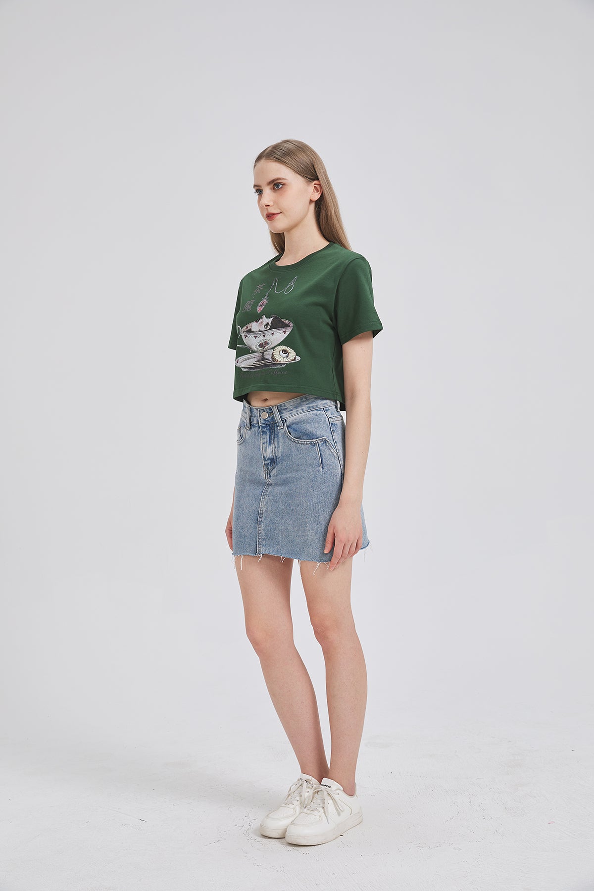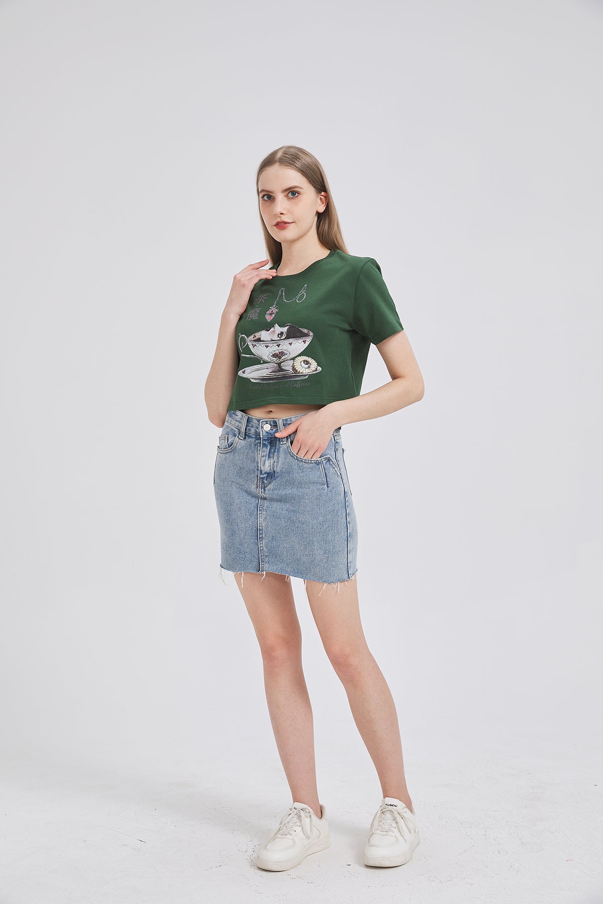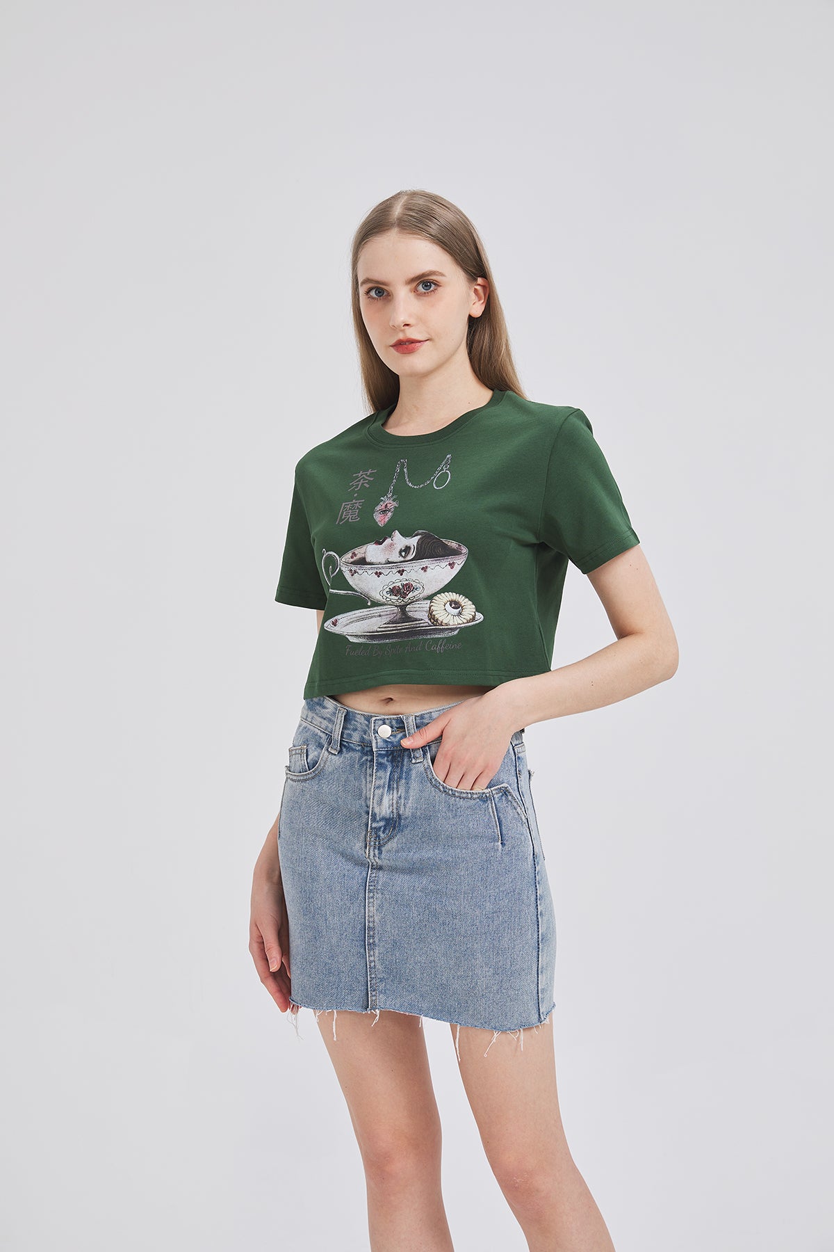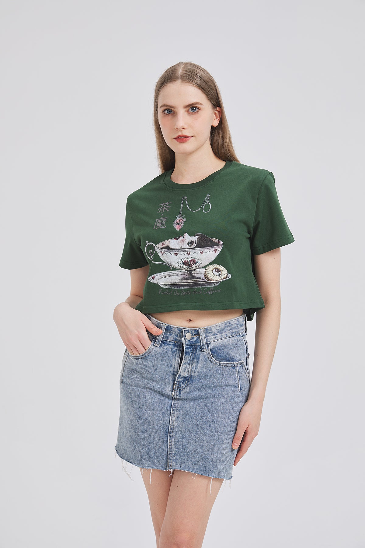 Tea Cup Girl Demon Cropped T-shirt Nichesou
