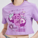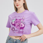 Toxic Berry Cat Cropped T-shirt Nichesou PURPLE