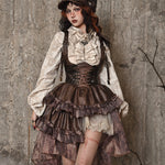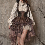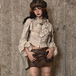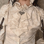 Features: Jabot Collar; Inelastic; Ruffle Neckline; Balloon Sleeves; Slim fit.